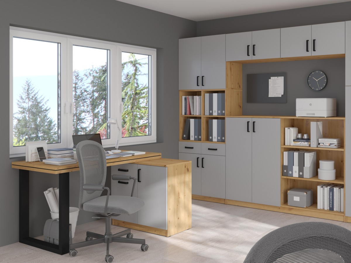 Psací stůl MAXIMUS je vyrobený z lamina v barevném provedení dub artisan/šedá.