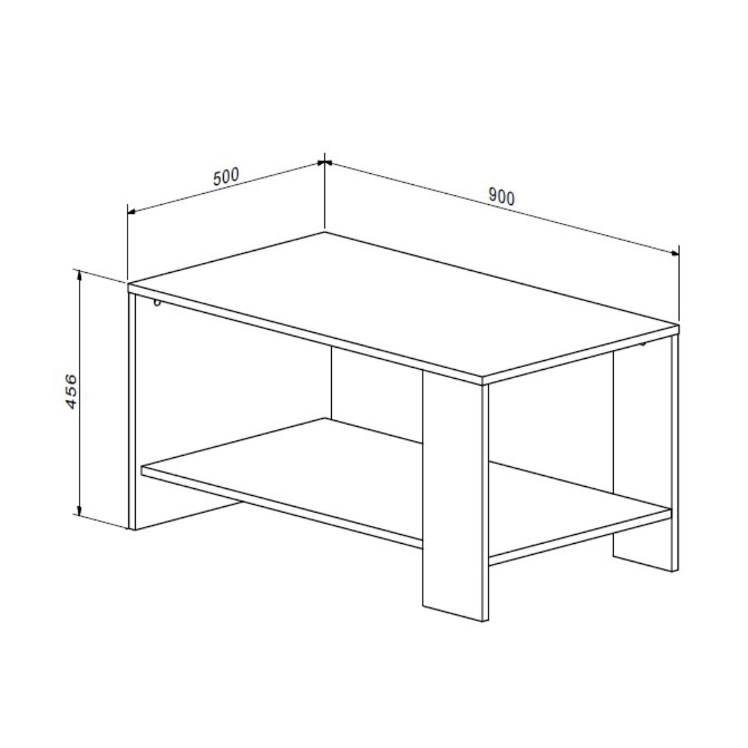 Odkládací police pod vrchní pracovní deskou nabízí prostor, kde si můžete odložit televizní ovladače, DVD, CD či noviny. Vrchní deska vám pak poskytne místo pro umístění občerstvení, nebo pro různé dekorace. Vyrobeno z lamina.
