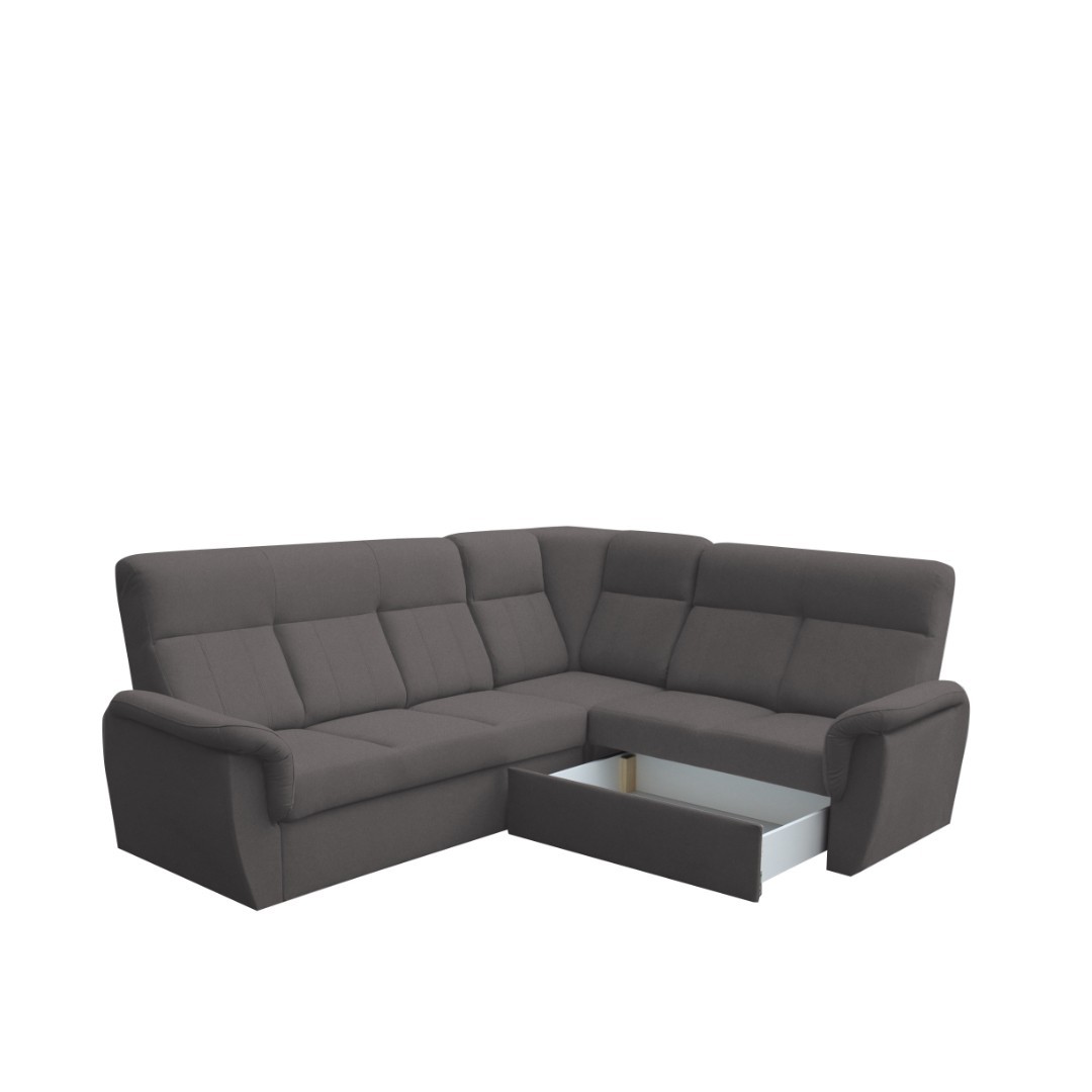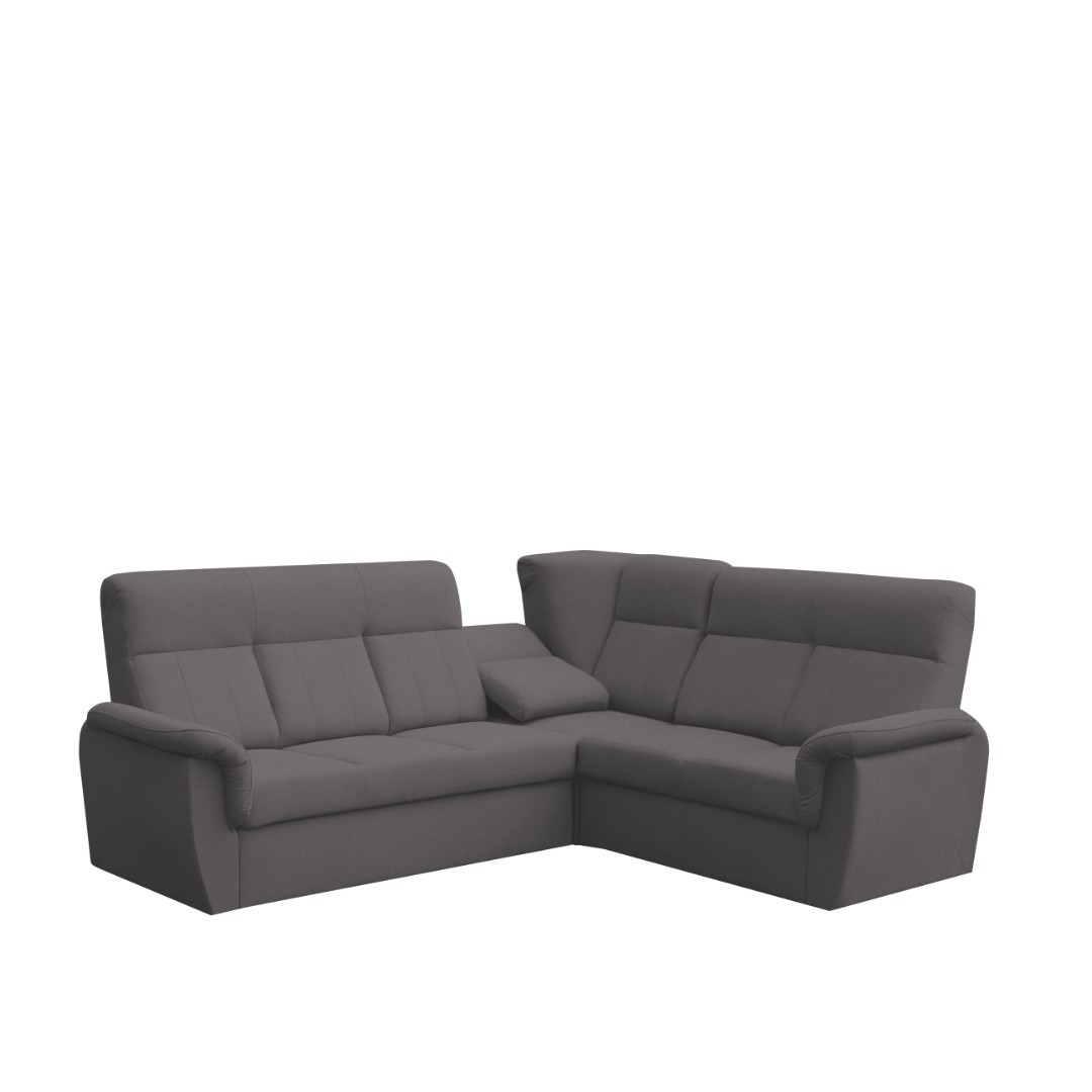 Barevné provedení sedací soupravy MODENA MINI je v tmavě šedém tónu látky Castel 93. Možnost objednat také v jiných barvách viz doplňkové foto. V případě zájmu napište do poznámky číslo a název látky z fotografie. Doba výroby 6-8 týdnů. Výplň sedačky zajišťuje PUR pěna a vlnité pružiny. Výhodou sedací soupravy MODENA MINI je možnost polohovat rohovou část opěráku. Vysoký opěrák zajistí stabilní opěru pro záda a tím je zajištěn ještě větší komfort při sezení.