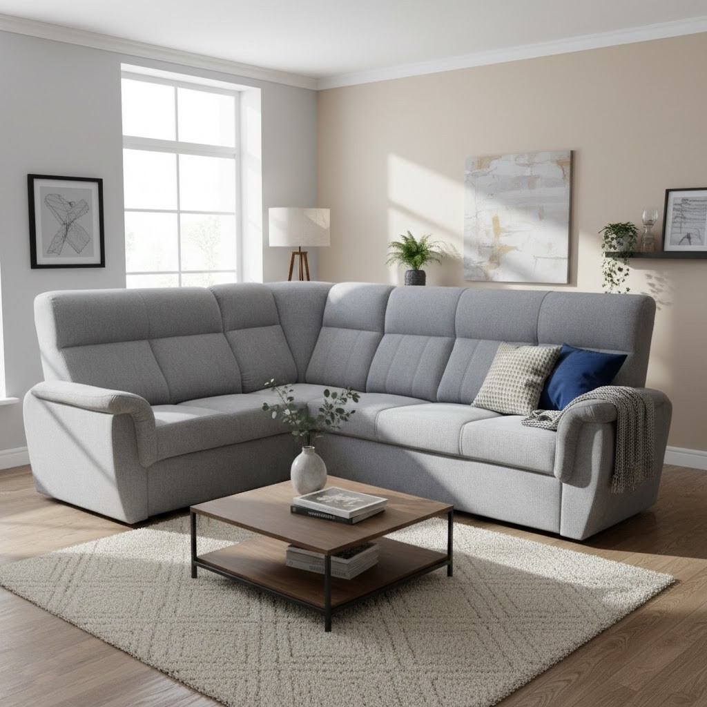 Oblíbená neutrální šedá barva zajistí snadné zapadnutí k ostatnímu nábytku v místnosti. Látka Aragon 83 - s úpravou water repellent - pro snadné čištění, nevsakuje tekutinu. Možnost objednat také v jiných barvách viz doplňkové foto. V případě zájmu napište do poznámky číslo a název látky z fotografie. Doba výroby 6-8 týdnů.