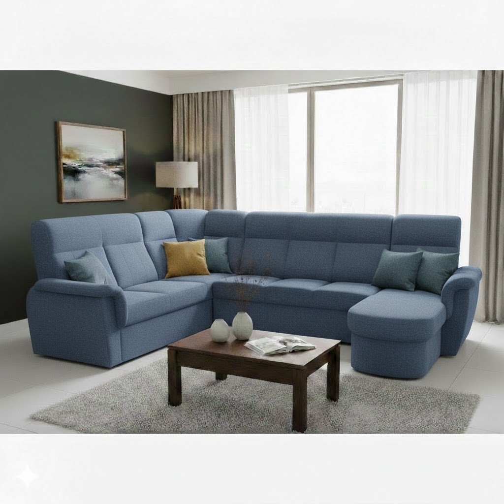 Máte opravdu prostorný obývací pokoj, který si zaslouží velikou sedací soupravu pro pohodlné sezení vás i vaší návštěvy? Pak jste na správném místě. Sedačka MODENA nabízí nejenom rozsáhlé místo k sezení, ale také funkci rozkladu a úložný prostor. Rohové provedení je pravé z pozice sedícího...