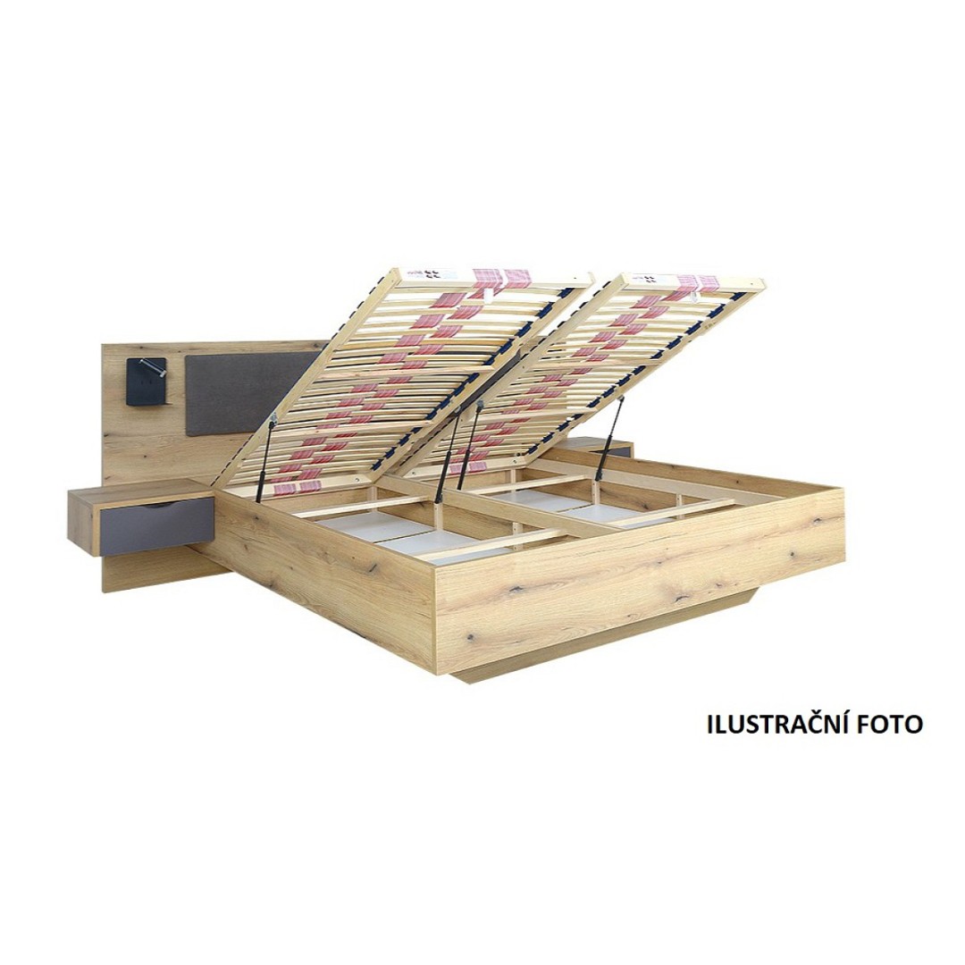 Součástí je také rošt Double Klasik - lamelový rošt. Výklop do úložného prostoru je od stany noh. Úložný prostor je integrovaný, vhodný pro uschování sezónních věcí a jiných drobností. Vyklop je snadný díky plynovým pístům.