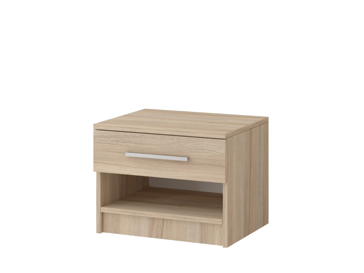 Noční stolek MOUSE SMILE 23 propojuje moderní design s praktičností. Vyrobený je z lamina o síle 16 mm, hrany jsou zakončeny ABS. Barva stolku je v tónu dub sonoma.