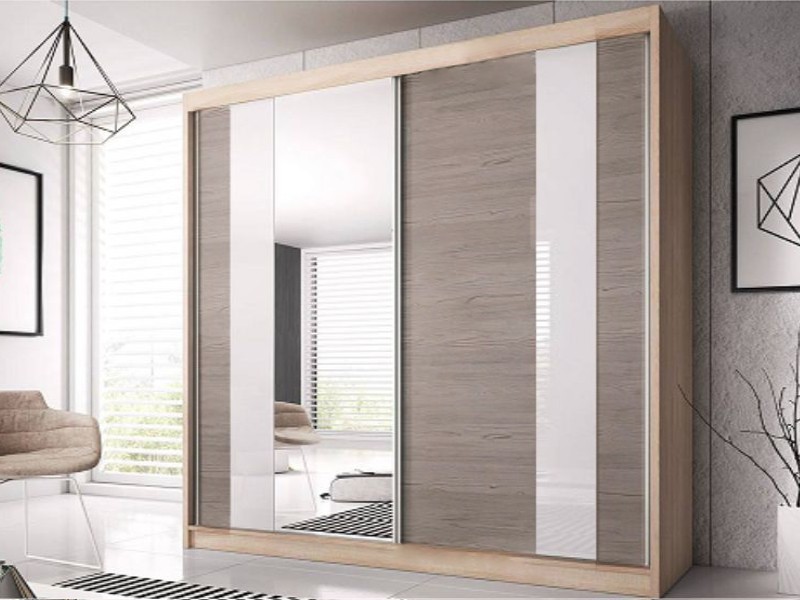 Šatní skříň má k dispozici posuvné dveře se zrcadlem. To opticky zvětší a projasní vaši místnost. Úložný prostor je chytře vyřešený a to v podobě části s policemi a s šatní tyčí.