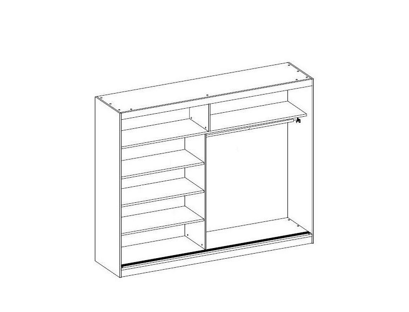 Skříň disponuje přehledným a chytře vyřešeným úložným prostorem s elegantním vzhledem. Skříň nabízí jak police, tak i šatní tyč. (viz doplňkové foto).