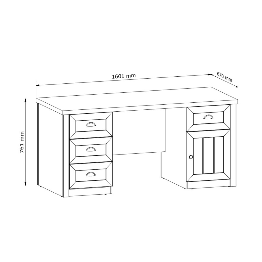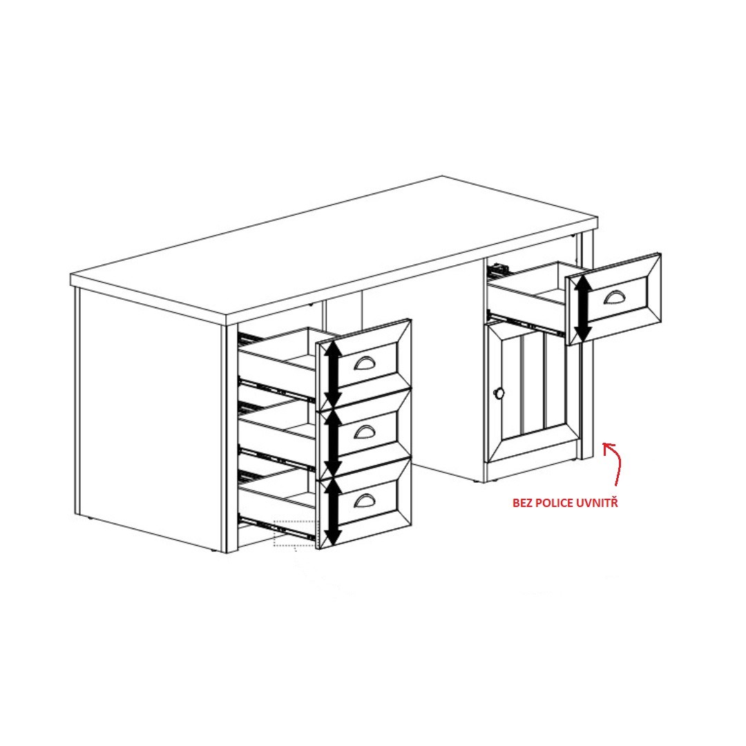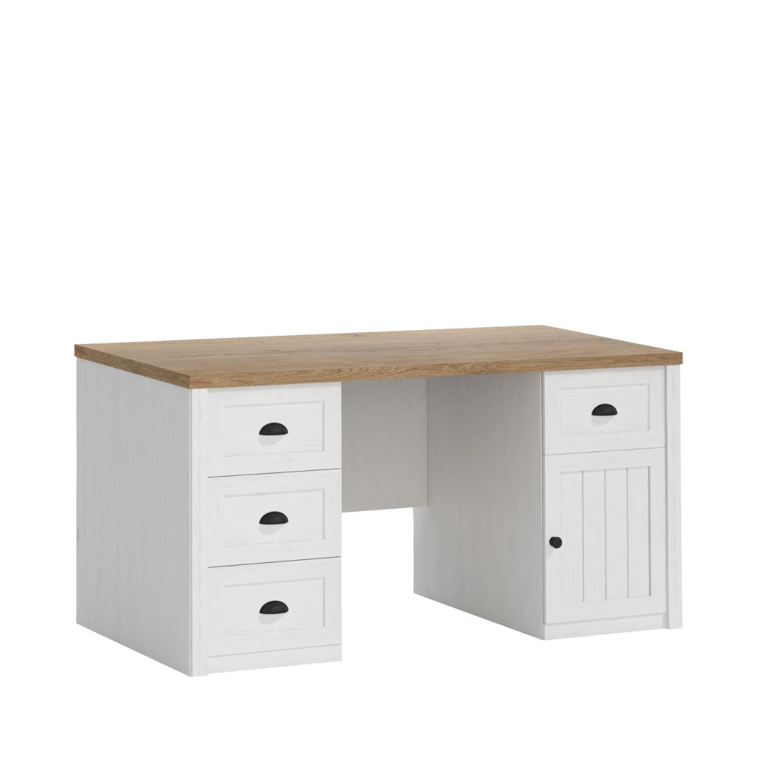 Psací stůl NABILIA B1 spojuje eleganci provensálského stylu s praktickou funkčností. Stůl nabízí prostorné šuplíky na uložení dokumentů a drobností, zatímco v druhé noze se skrývá kombinace šuplíku a skříňky, ideální pro organizaci kancelářských potřeb. Barevné provedení je v kombinaci tónů borovice andersen/dub lefkas. Tento dekor doplňují kovové úchytky černé barvy, které podtrhují stylový a nadčasový vzhled nábytku. Úchytky na stole jsou ve dvou provedeních. Díky své univerzálnosti se stůl NABILIA hodí nejen do pracovny, ale i do obývacího pokoje nebo ložnice, kde přináší harmonii a útulnou atmosféru Provence...