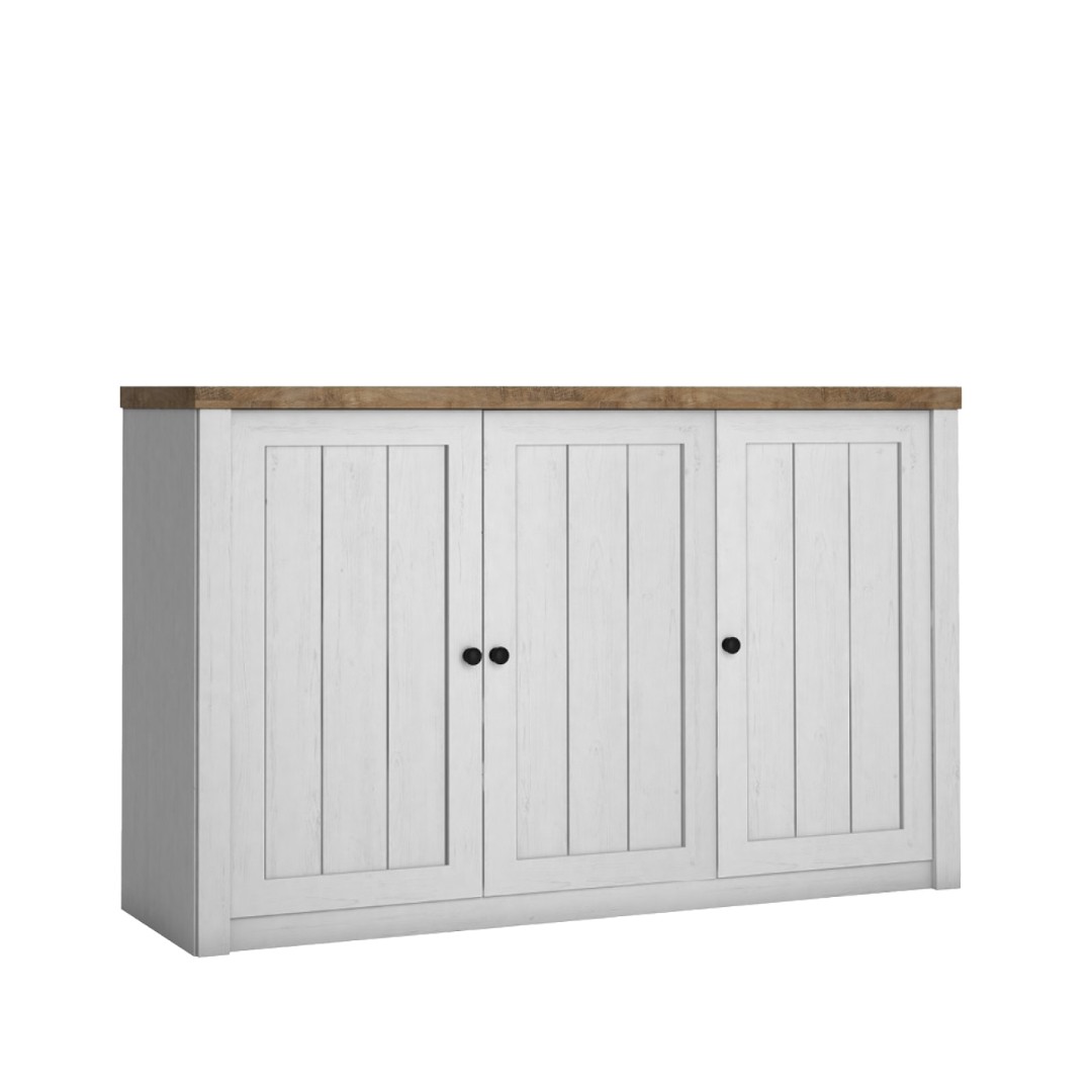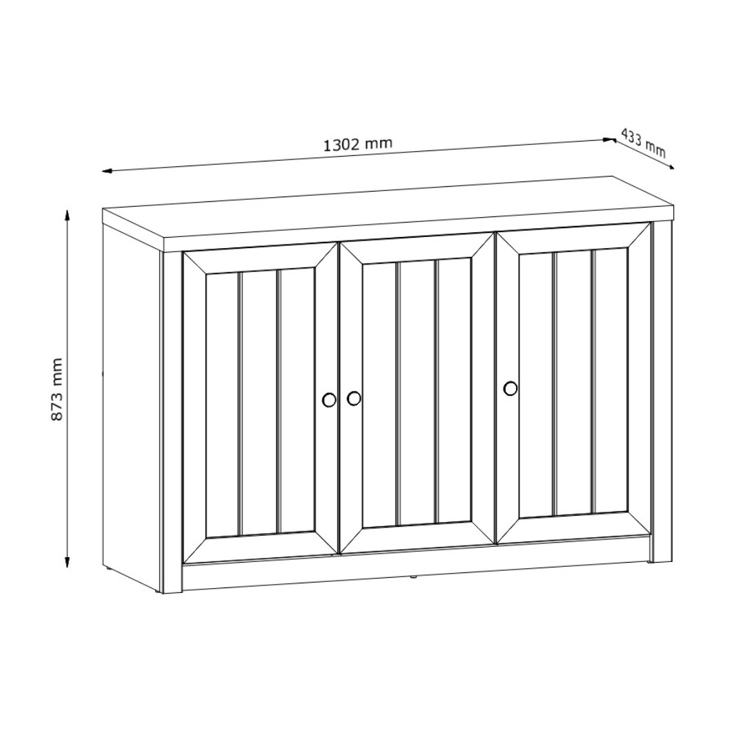 Komoda NABILIA K3D přináší do interiéru kouzlo provensálského stylu a praktickou organizaci. Komoda je vybavena třemi dvířky, za kterými se ukrývá vždy jedna police, ideální pro ukládání oblečení, doplňků či dalších drobností. Design doplňují kovové knoflíkové úchytky, které podtrhují elegantní a nadčasový vzhled. Díky univerzálnímu provedení se komoda hodí do obývacího pokoje, ložnice i předsíně, kde přináší harmonii, pořádek a útulnou atmosféru stylu Provence...
