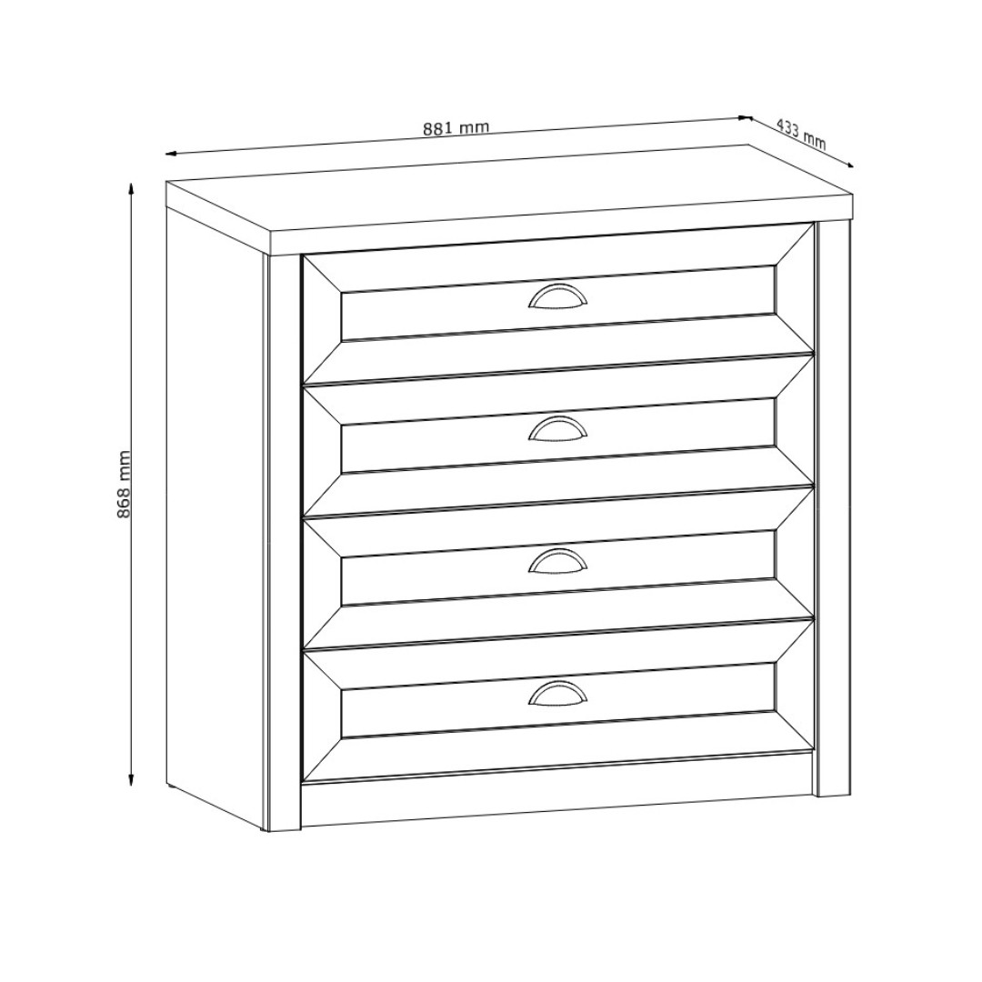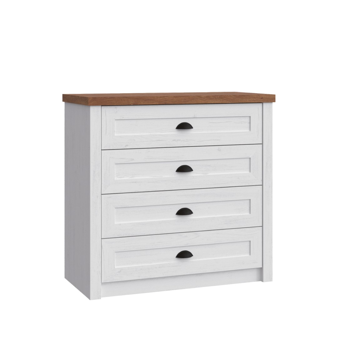 Komoda NABILIA K4 se šuplíky je dokonalou kombinací stylu a praktičnosti. Nabízí prostorné šuplíky, které umožňují snadné a přehledné ukládání oblečení, drobností či jiných dokumentů. Nechybí ani kovové úchytky pro snadnější manipulaci při otevírání a zavírání nábytku. Úchytky podtrhují nadčasový provensálský design, který vnese do vašeho domova útulnou a harmonickou atmosféru. Komoda se hodí do obývacího pokoje, ložnice i pracovny, kde spojuje praktičnost s jemným, stylovým vzhledem...