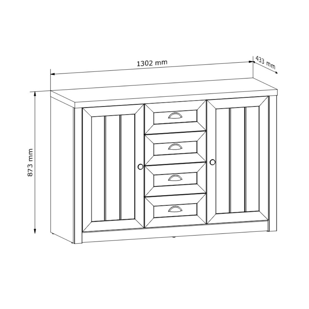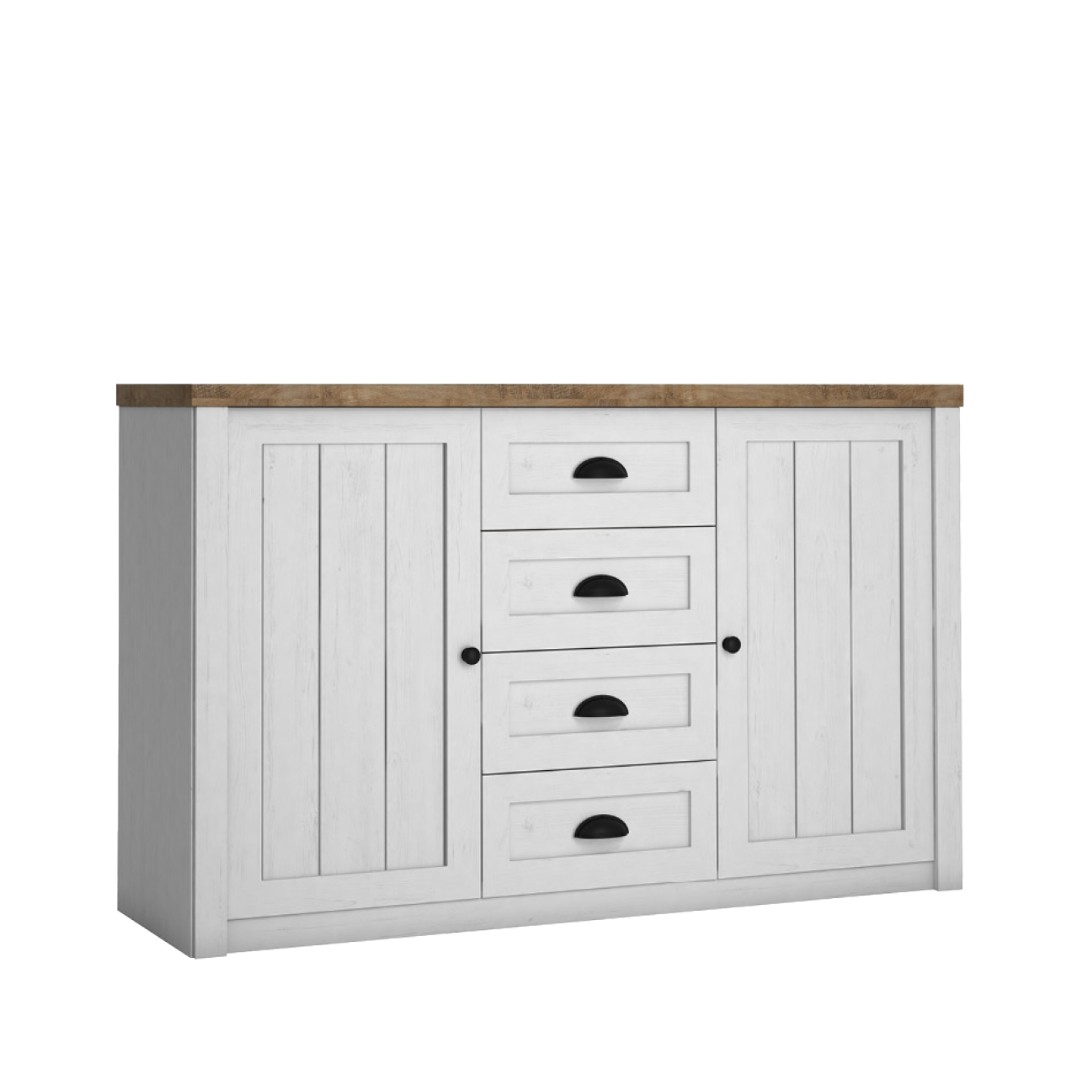 Komoda NABILIA K4S spojuje elegantní provensálský styl s praktickým uspořádáním úložných prostorů. Po bočních stranách komody se nachází skříňky s policí, ideální pro ukládání větších předmětů, zatímco uprostřed jsou šuplíky pro drobnosti a doplňky, které chcete mít vždy po ruce. Nechybí ani kovové úchytky pro snadnější manipulaci při otevírání a zavírání nábytku...