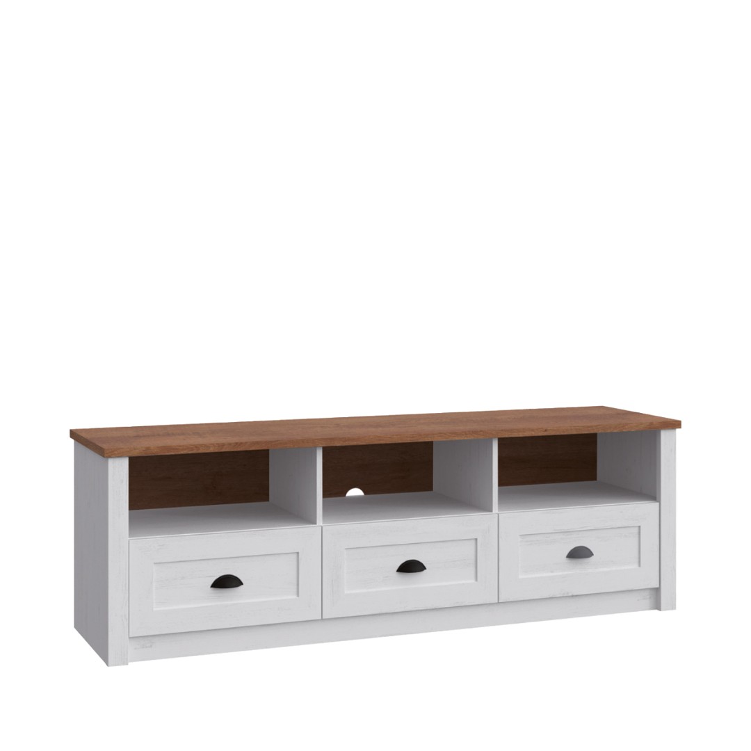 TV stolek NABILIA RTV vnáší do vašeho domova kouzlo provensálského stylu a zároveň nabízí praktické uspořádání prostoru. Horní otevřená část je ideální pro umístění elektroniky, dekorací nebo dalších doplňků, které chcete mít na očích. Pod ní se nacházejí prostorné šuplíky, které poskytují dostatek místa na uložení příslušenství, kabelů či dalších drobností...
