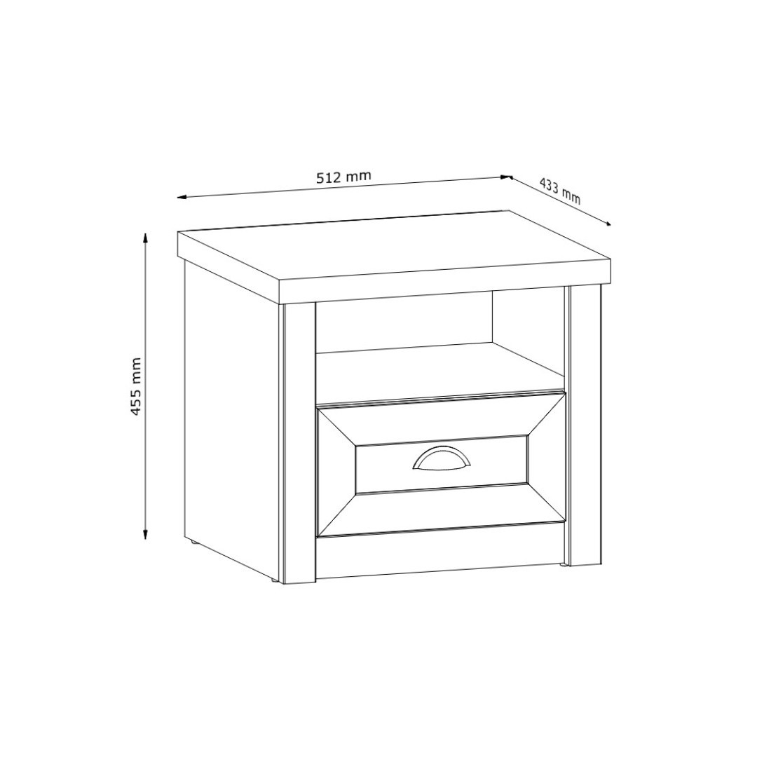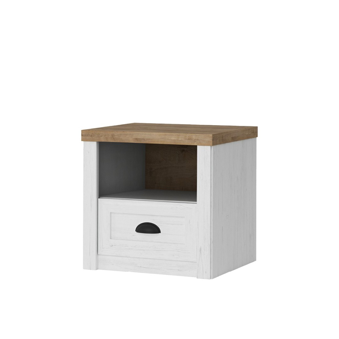 Noční stolek NABILIA SN přináší do ložnice jemný provensálský šarm a praktické řešení úložného prostoru. Díky šuplíku a otevřené polici máte po ruce vše, co potřebujete – od knih a brýlí až po drobné osobní předměty. Elegantní kovové úchytky doplňují nadčasový design a ladí s ostatními prvky kolekce NABILIA. Stolek se snadno kombinuje s postelí a dalšími kusy nábytku a vytváří útulnou a harmonickou atmosféru vaší ložnice...