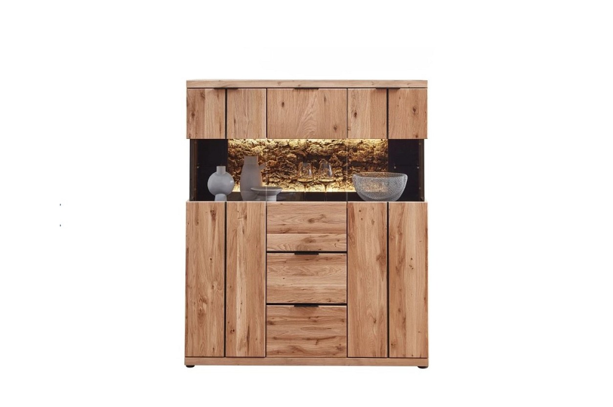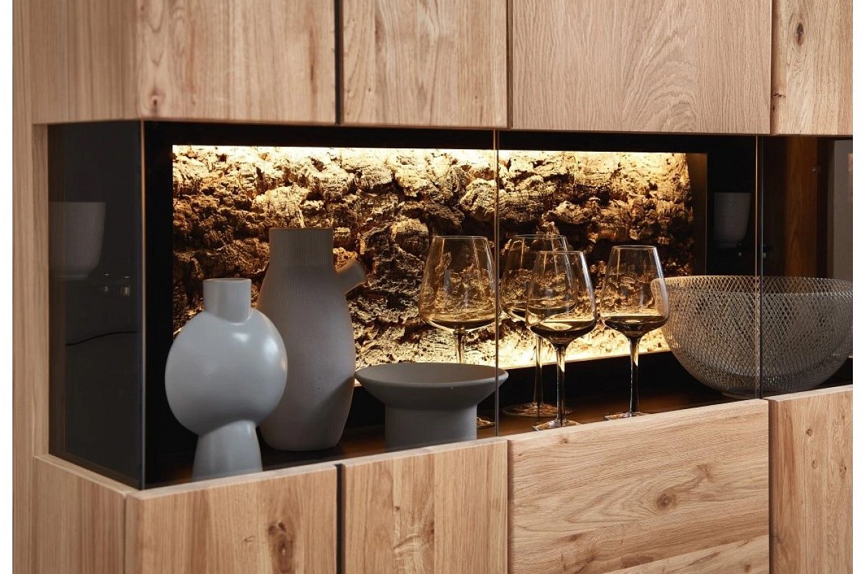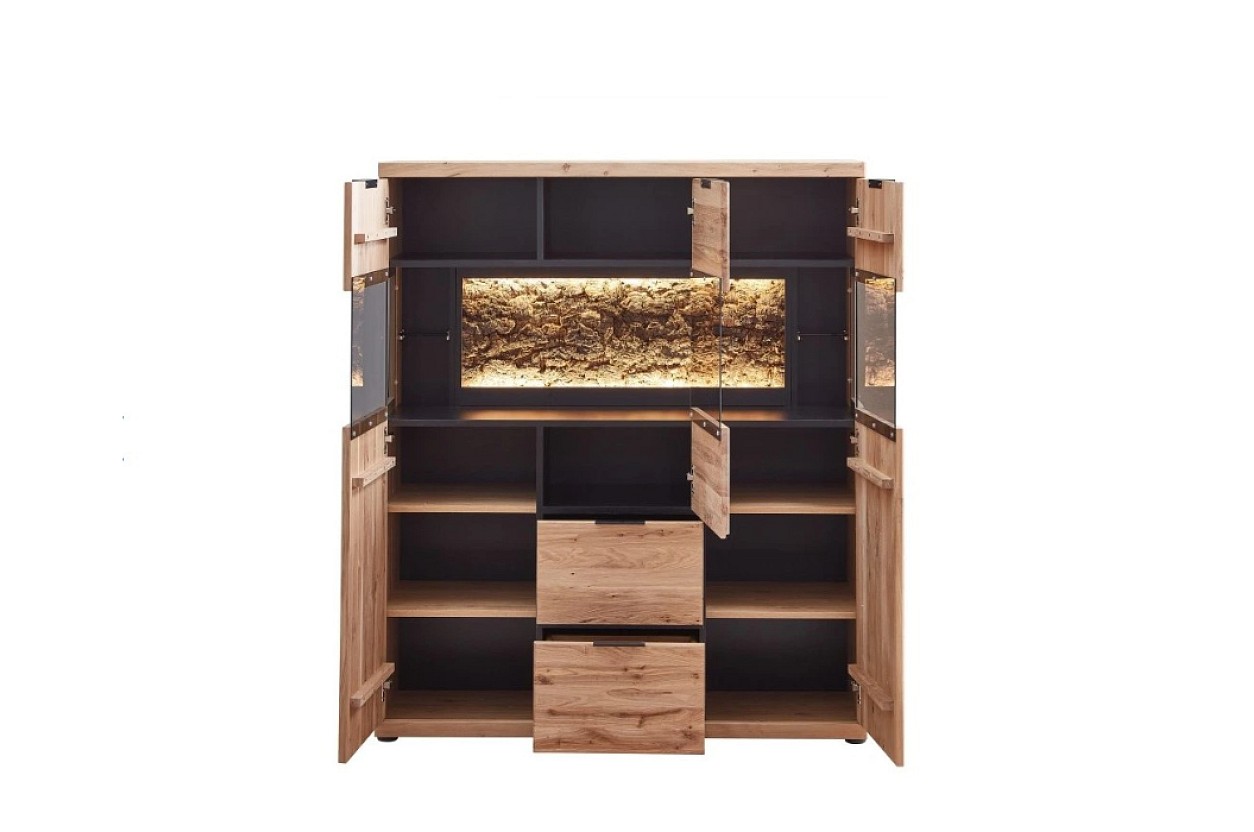 Komoda NEAPOL je vybavena moderním LED osvětlením, které podtrhuje krásu vystavených předmětů.