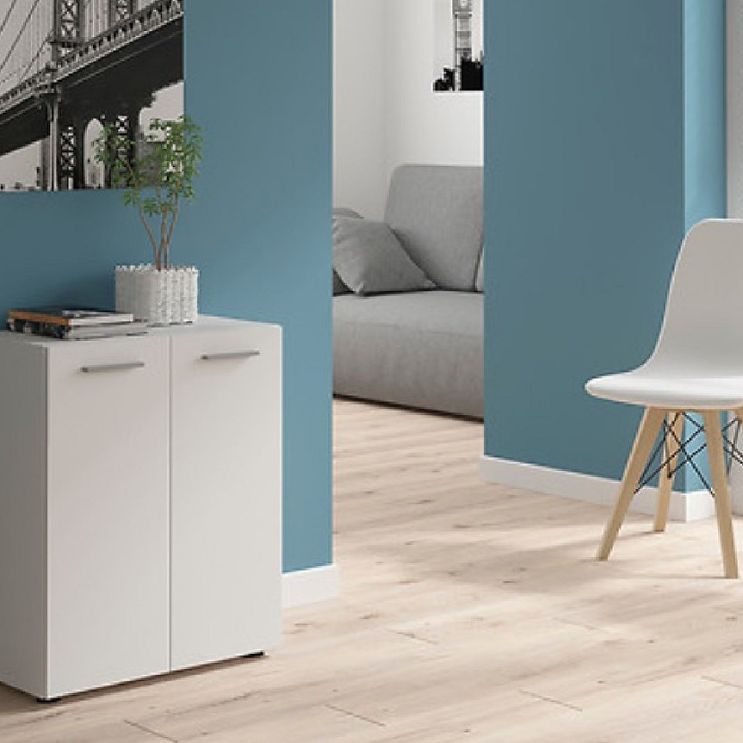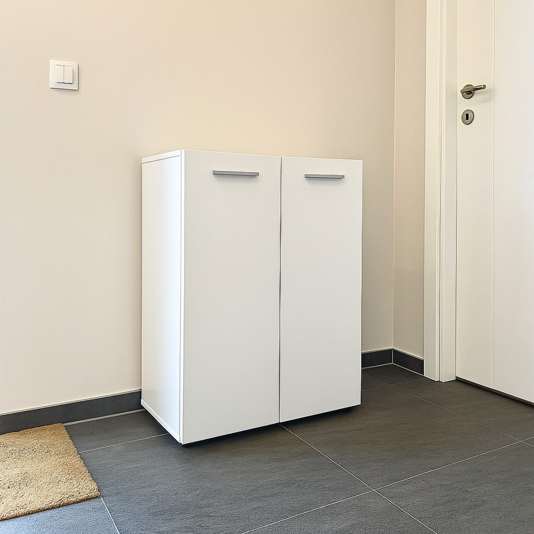 Skříňka NENO REG2D je vyrobena z lamina v bílé barvě. K dispozici má úložný prostor v podobě police uschované za dvířky.