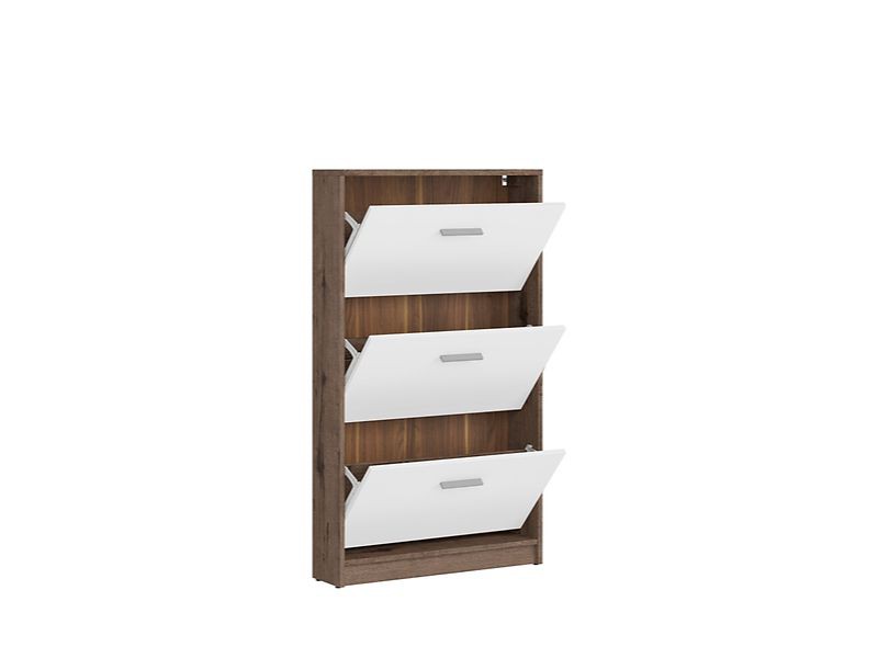 Botník se skládá ze tří boxů s výklopnými čely. V každém z boxů budete mít k dispozici úložný prostor o délce 65 cm. Úchytky jsou vyrobené z tvrzeného plastu.