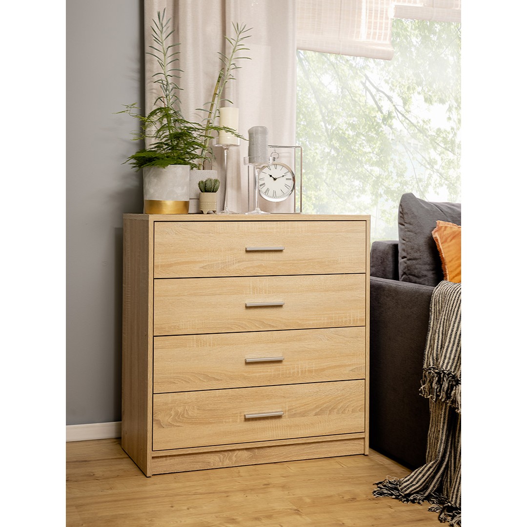 Na výrobu komody je použito lamino o síle 1,6 cm, ve stylovém dekoru světlý Dub sonoma.
