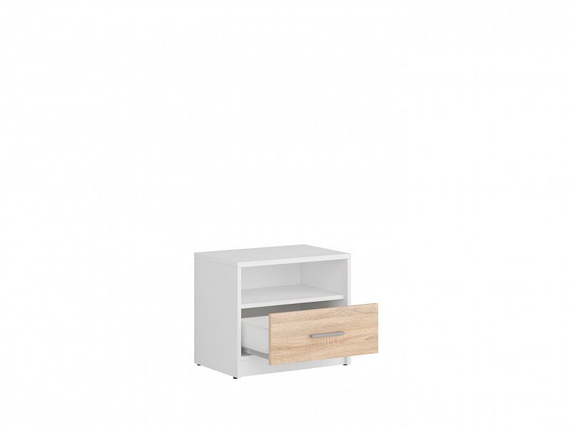 U nočního stolku Nepo Plus můžete využít prostornou polici i praktickou zásuvku. Využitelná výška otevřené police je ca 18 cm. Zásuvka poskytne úložný prostor o rozměrech š. 40 x h. 29 x v. 10 cm.