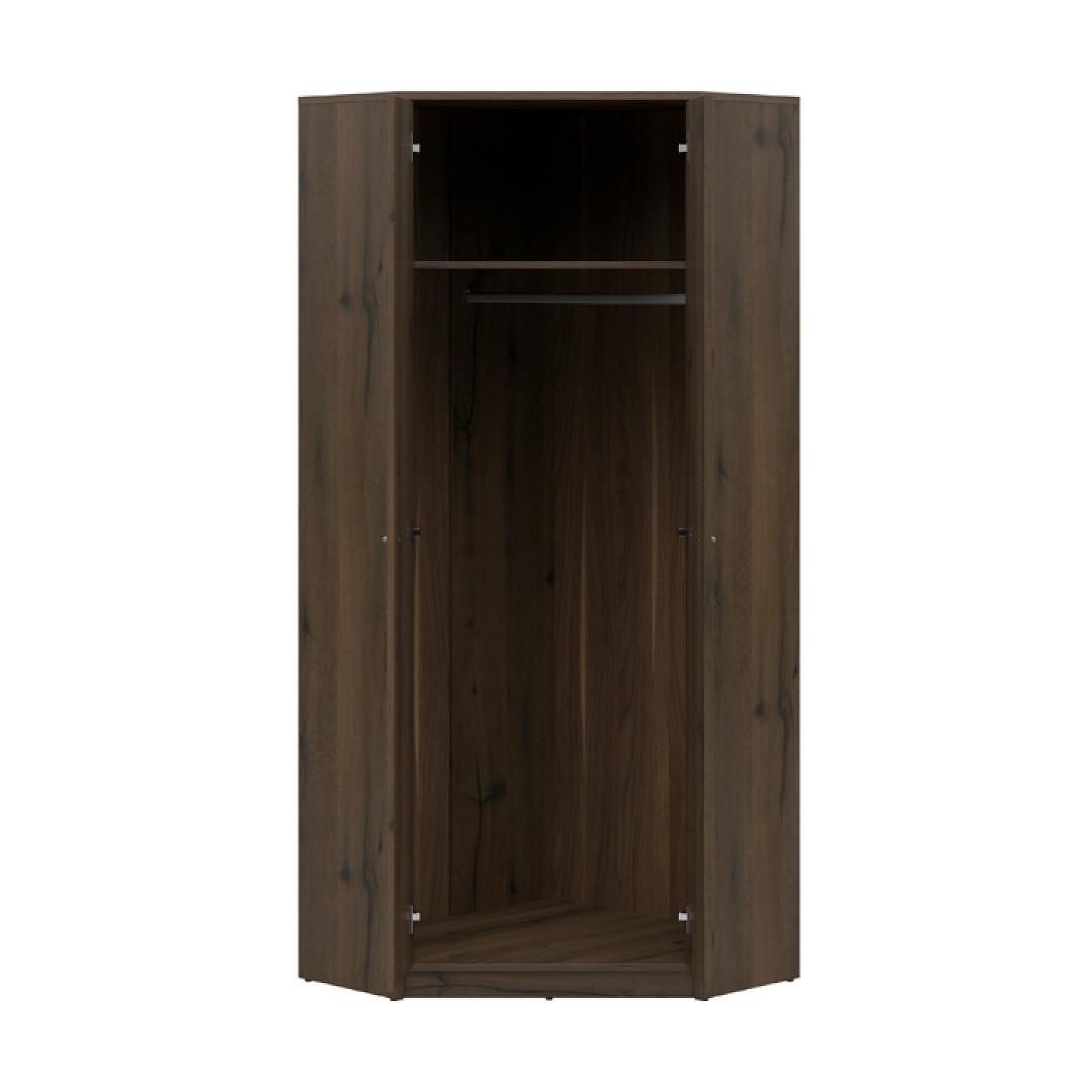 Vnitřní vybavení skříně tvoří jedna police v horní části a šatní tyč dlouhá 75 cm. Je zde tedy mnoho úložného prostoru nejen pro oblečení. Snadné otevírání dveří zajistí dlouhé úchytky z tvrzeného plastu, které skvěle sedí k čistému designu skříně Nepo Plus. I když je skříň rohová, nemusíte se obávat horšího přístupu do úložného prostoru skříně. Po otevření dveří bude úložný prostor zpřístupněn v šířce ca 60 cm.