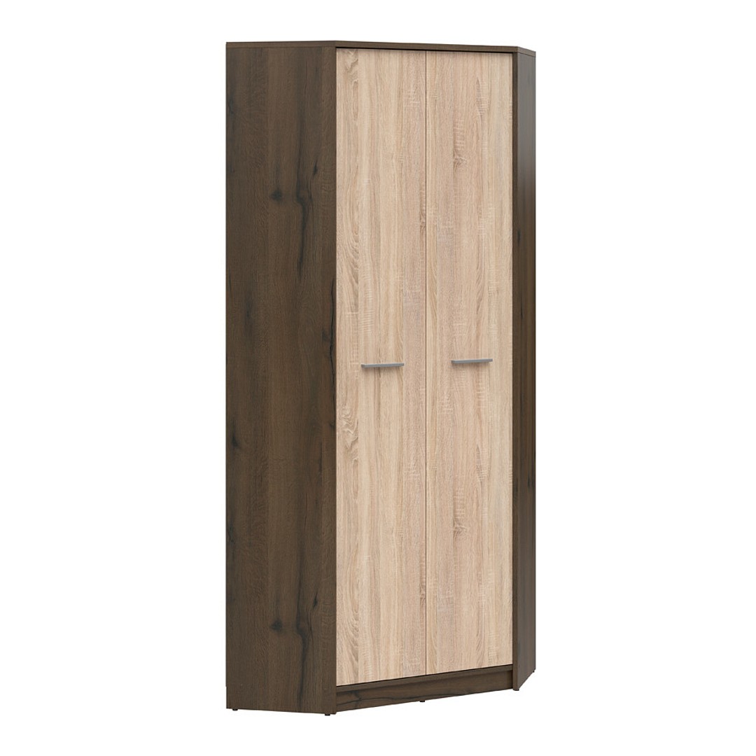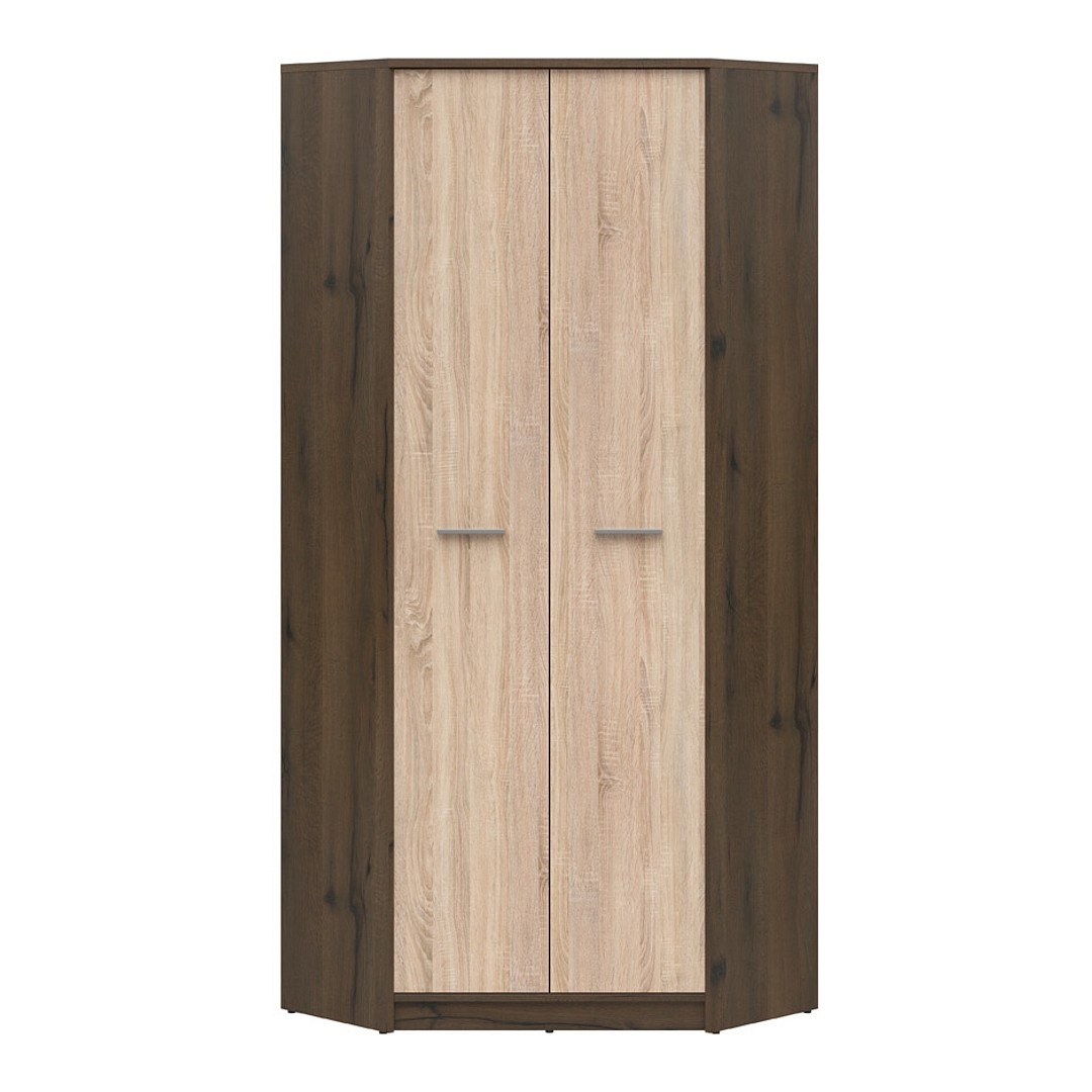 Rohová šatní skříň Nepo Plus SZFN2D je dalším prvkem nábytkové řady Nepo Plus, která nabízí širokou škálu nábytku do celé domácnosti. Skříň Nepo Plus je vyrobena z lamina o síle 1,6 cm. Kombinace tmavě hnědého dekoru Dub ušlechtilý a světle hnědého dekoru Dub Sonoma je neotřelá a líbivá...
