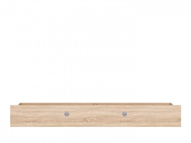Čelo zásuvky je vysoké 26 cm. Zásuvka tedy nezajíždí pod postel celá, čelo šuplíku je opřeno o bočnici postele. Ke snadné manipulaci se zásuvkou slouží vložené kulaté úchytky z tvrzeného plastu a spodní kolečka.