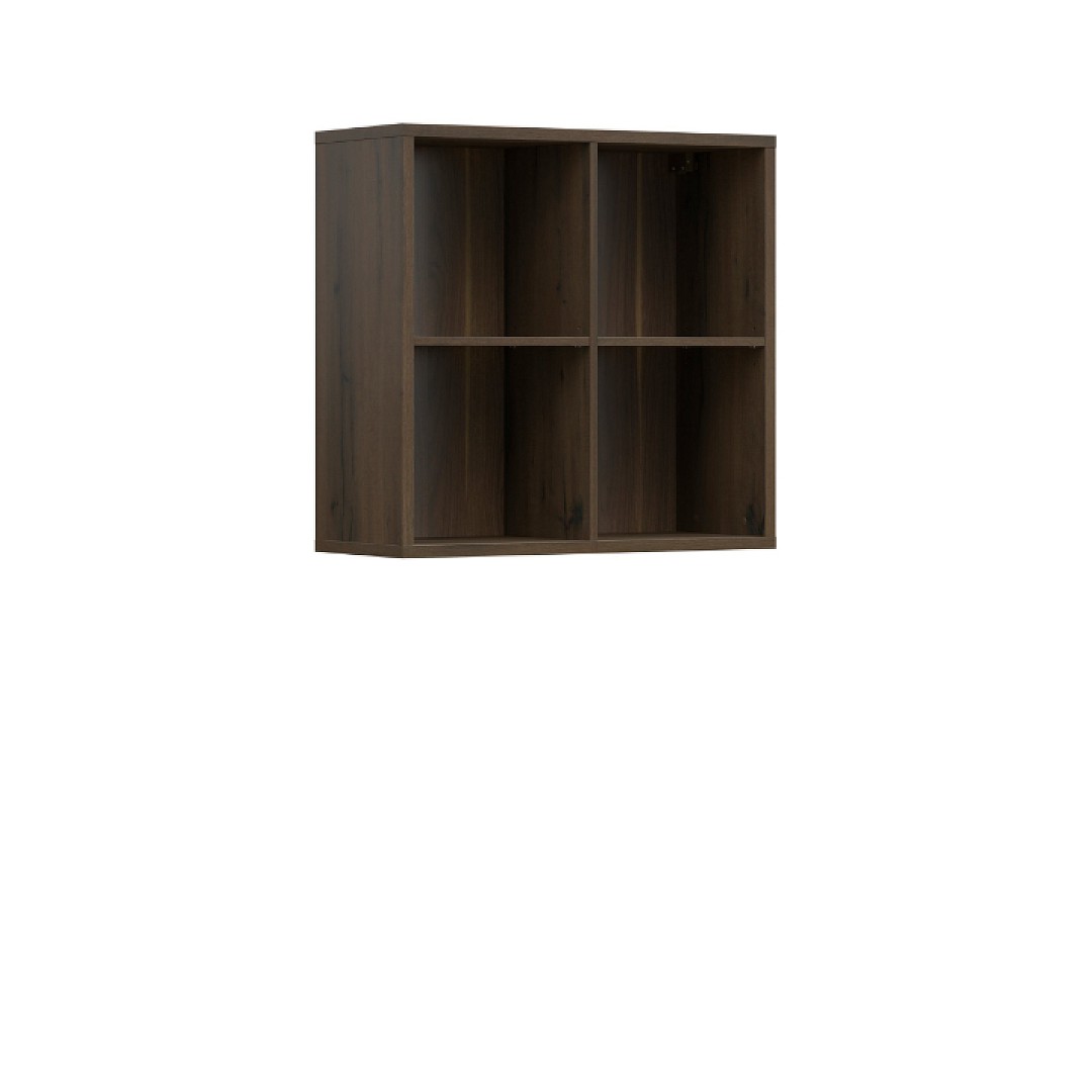Závěsná police NEPO PLUS je vyrobena z lamina v tmavém dekoru dřeva dub ušlechtilý. V nabídce také další barvy viz barevné varianty. Police je rozdělena na 4 stejně velké otevřené části. Vrchní police má nosnost 5 kilo, vnitřní police 4 kila.