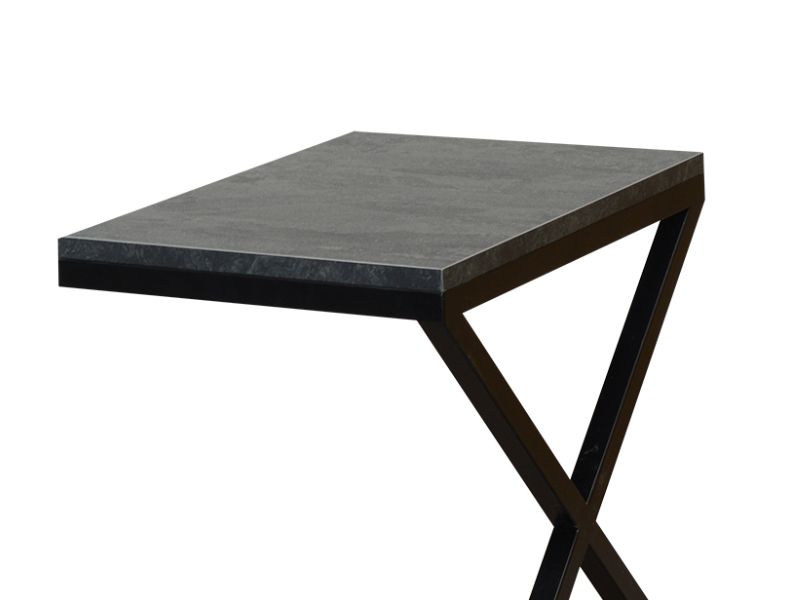 Stolek NYX je vyroben z lamina v barevném provedení mramor uhelný. Celkový design industrialismu podtrhují kovové, černé nohy. Vrchní deska je o síle 18 mm. Tvar vrchní desky je obdélník s rozměrem 35 x 50 cm.