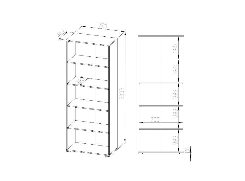 Barevné provedení regálu OLIER je v tónu dub sonoma. Vyrobený je z lamina 22 mm + ABS hran.