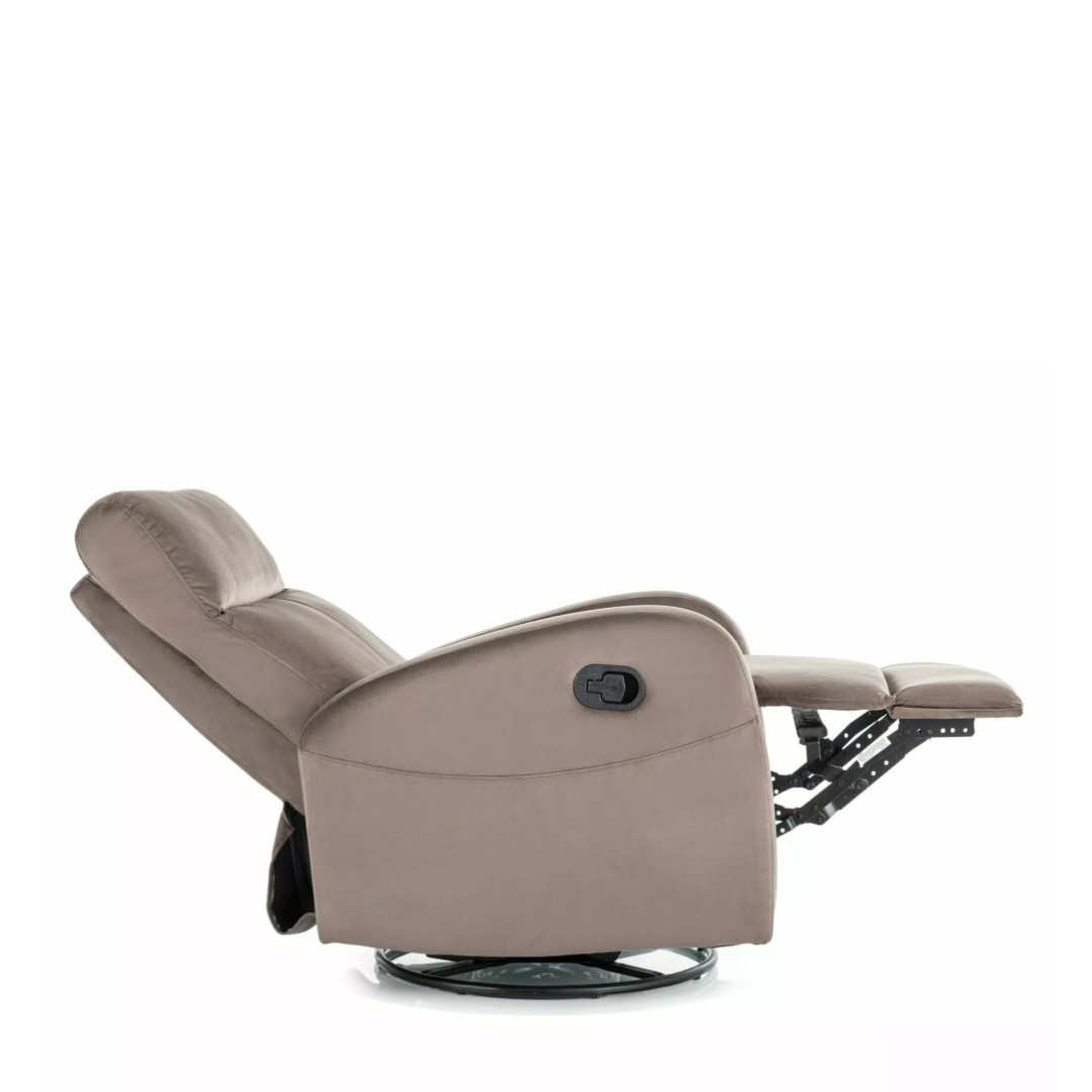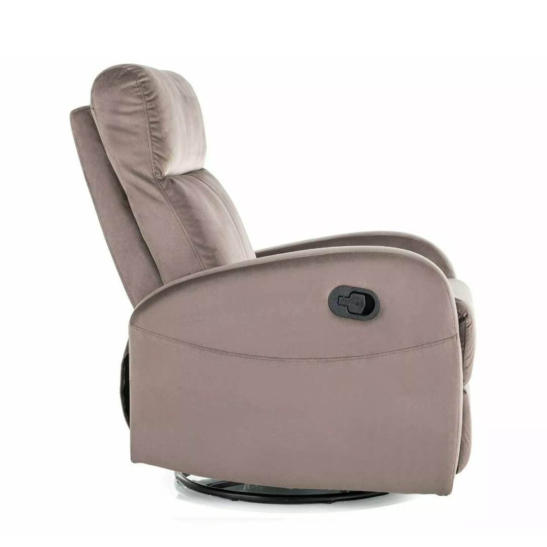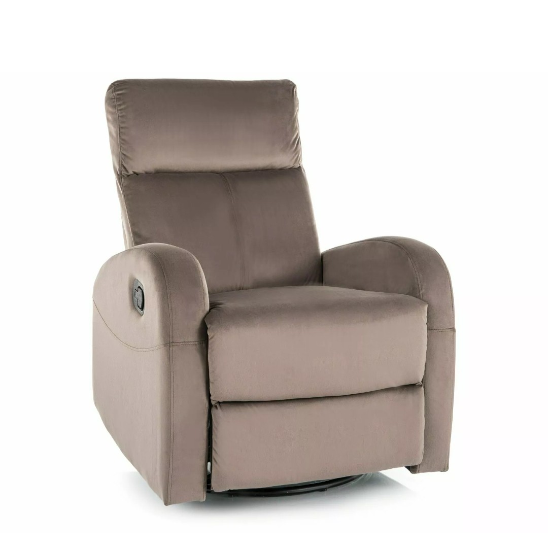 Relaxační křeslo OLIMPUS je čalouněné látkou v barvě cappuccino - Bluvel 38. Látka je sametového vzhledu. Je odolná vůči oděru a žmolkování, snadno čistitelná. K dispozici máme více barev viz barevné varianty.