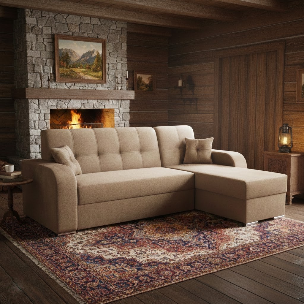 Dozajista upoutá pozornost výrazné prošití opěráku. Pohodlí zajistí možnost rozkladu typu Delfin. Rozklad je čalouněný v totožné látce jako celá sedačka. Velikost spací plochy je o rozměrech 133 x 199 cm. Součástí je také úložný prostor pro uschování lůžkovin.