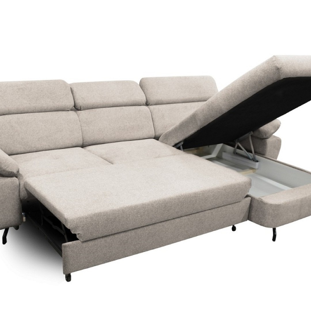 Praktickým prvkem je možnost rozkladu, která vám poskytne dostatek prostoru pro příležitostné přespání, přičemž celá plocha je očalouněná ve stejné látce jako zbytek sedačky, což zaručuje jednotný vzhled. Velikost spací plochy je o rozměrech 124x230 cm. Velký úložný prostor je umístěn v otomanu.