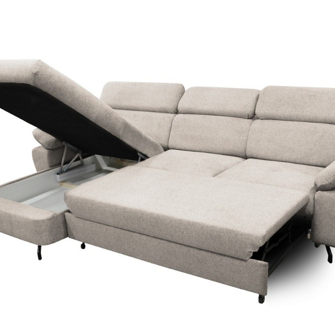 Praktickým prvkem je možnost rozkladu, která vám poskytne dostatek prostoru pro příležitostné přespání, přičemž celá plocha je očalouněná ve stejné látce jako zbytek sedačky, což zaručuje jednotný vzhled. Velikost spací plochy je o rozměrech 124x230 cm. Velký úložný prostor je umístěn v otomanu.