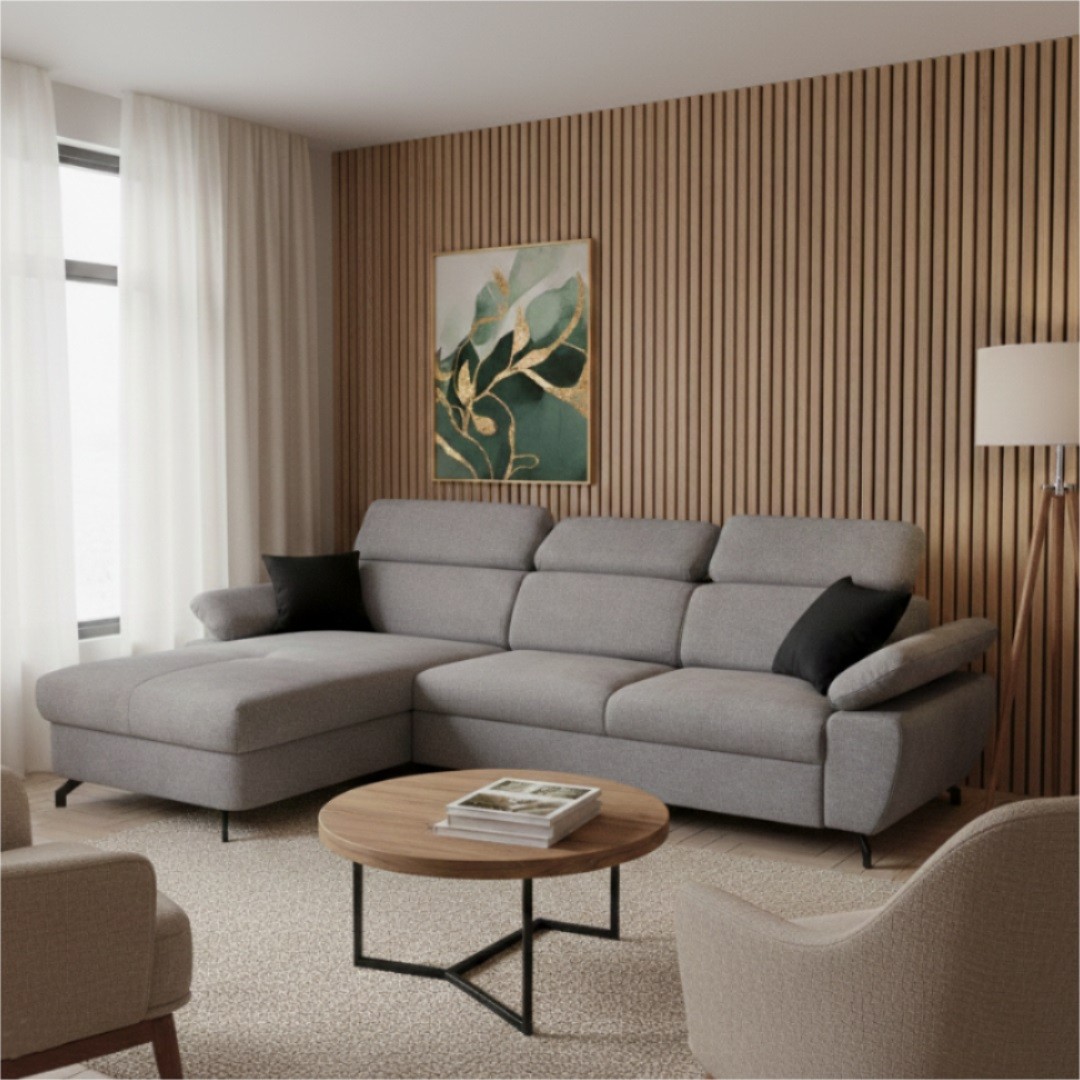 Praktickým prvkem je možnost rozkladu, která vám poskytne dostatek prostoru pro příležitostné přespání, přičemž celá plocha je očalouněná ve stejné látce jako zbytek sedačky, což zaručuje jednotný vzhled. Velikost spací plochy je o rozměrech 124x230 cm. Velký úložný prostor je umístěn v otomanu.