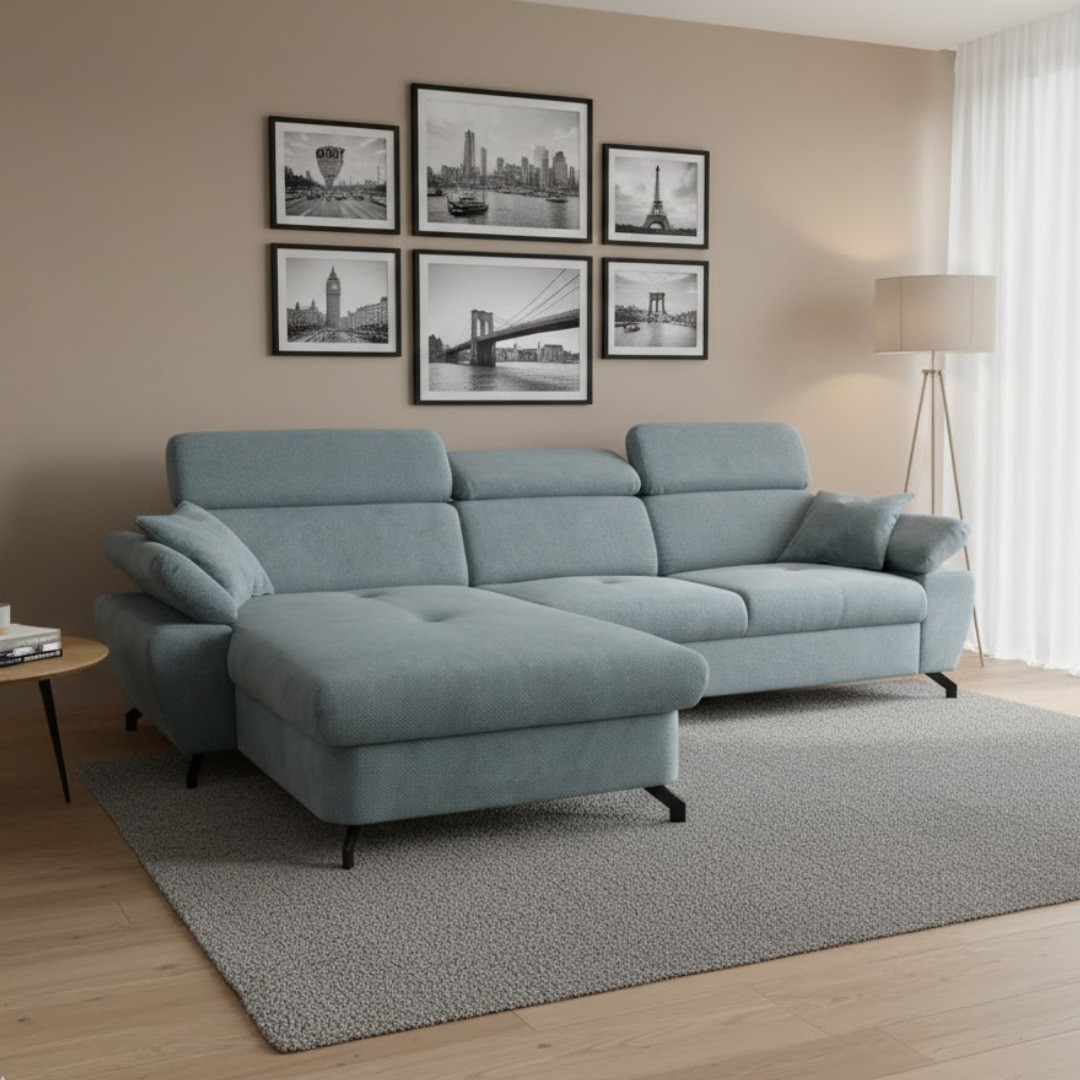 Komfortní rohová sedací souprava OPTIMAL II TRENDY s velkými opěrnými polštáři, funkcí rozkladu na lůžko i úložným prostorem, nabízí dostatečné místo k sezení pro vaši rodinu. Navíc má nastavitelné opěrky hlavy, které zajistí ještě vetší komfort při sezení. Ty je možné dle aktuální potřeby nastavit. Jejich výška je tak v rozmezí 79 - 96 cm. Polohovací jsou také područky. Varianta rohu je pravá z pozice sedícího...