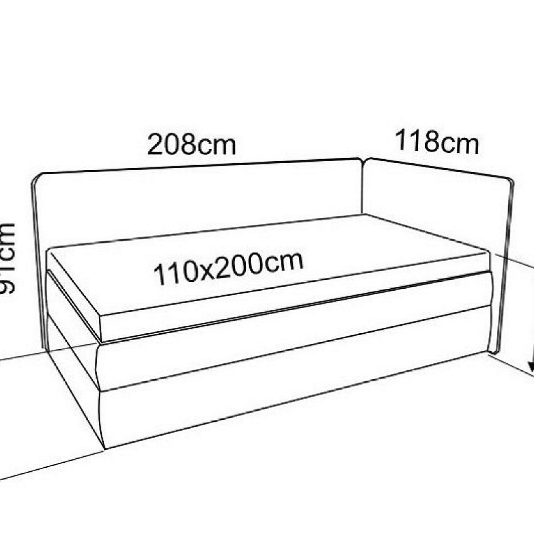 Spací plocha je o velikosti 110 x 200 cm, výška sedu je 57 cm.