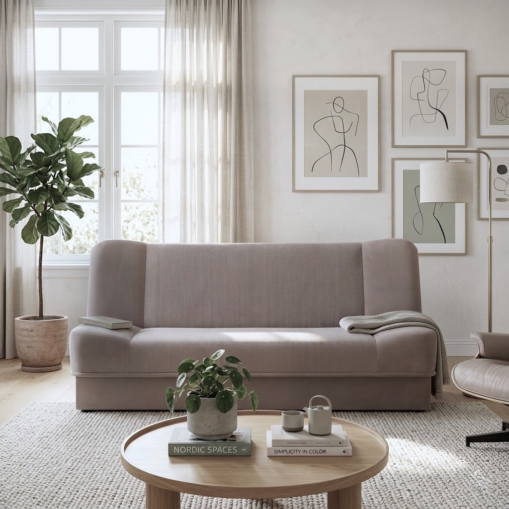 Pod sedací částí se nachází úložný prostor vhodný pro uschování lůžkovin.