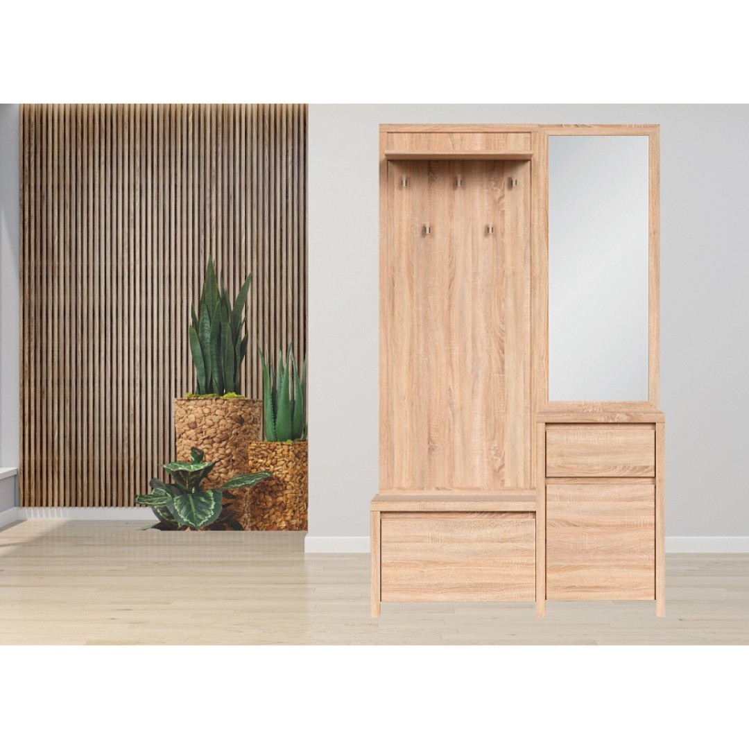 Sestava ORFA LIRANO je vyrobena z lamina v oblíbeném dekoru dřeva dub sonoma. Skládá se z botníku, skříňky, zrcadla a věšáku díky čemuž je vytvořen harmonický celek.
