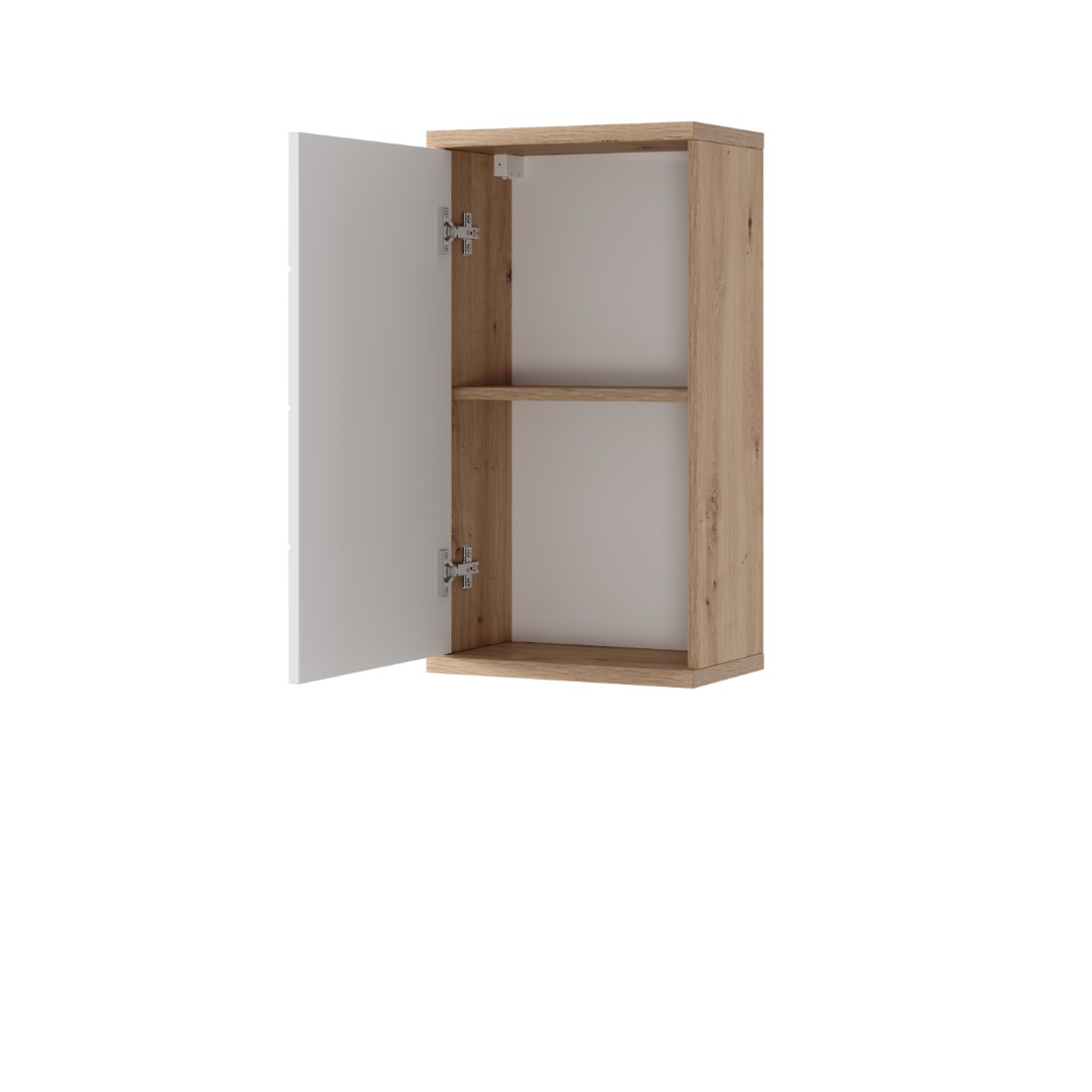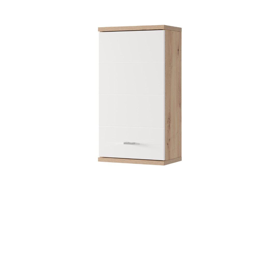 Skříňka ORFA SILONÉ je vyrobena z lamina v kombinaci barev dub artisan/bílý vysoký lesk. Nechybí ani praktické tiché dovírání dvířek a stříbrné úchytky pro snadnější manipulaci při otevírání a zavírání nábytku.