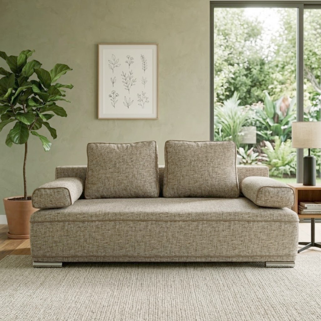 Nabízí pohodlné místo k sezení i dočasnému přespání. Rozklad je o velikosti spací plochy 147 x 200 cm. Při rozkládání pohovky je nutné mírné odsunutí od zdi, nebo nemít pohovku natlačenou až u zdi. Pod sedací částí je k dispozici úložný prostor vhodný k uschování ložního prádla a denních dek.