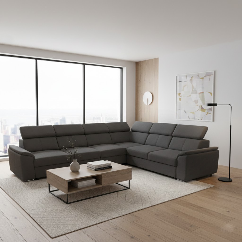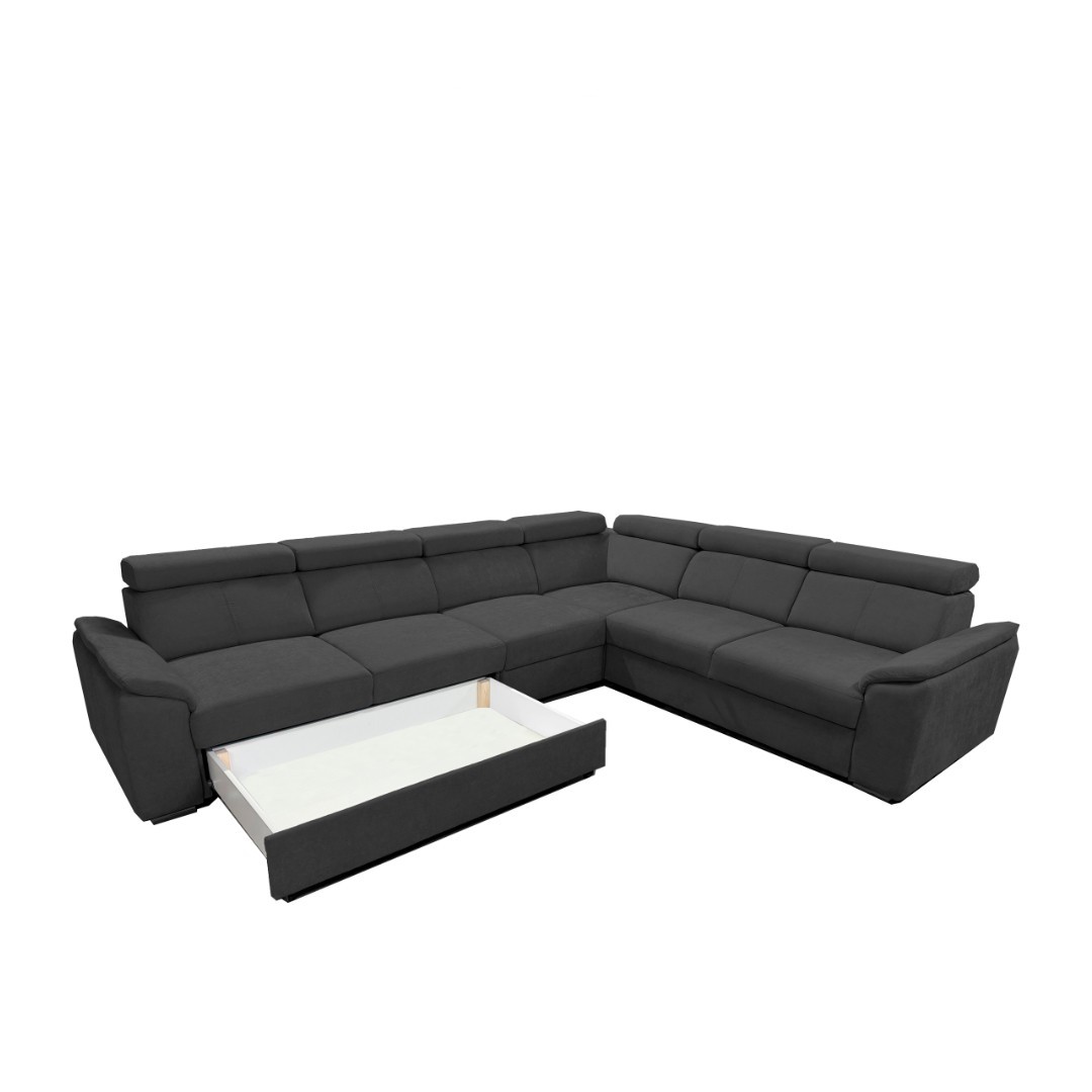 Pohodlné sezení zabezpečuje komfortní výplň tvořená vlnitou pružinou, polyuretanovou pěnou T30kg/m3(opěrky T25kg/m3). Dále k pohodlí přispívá 5x polohovací záhlavník. Výška je tak v rozmezí 79/97 cm. Po rozložení sedací soupravy vznikne spací plocha o velikosti 130 x 190 cm. Rozklad je typu Delfin.