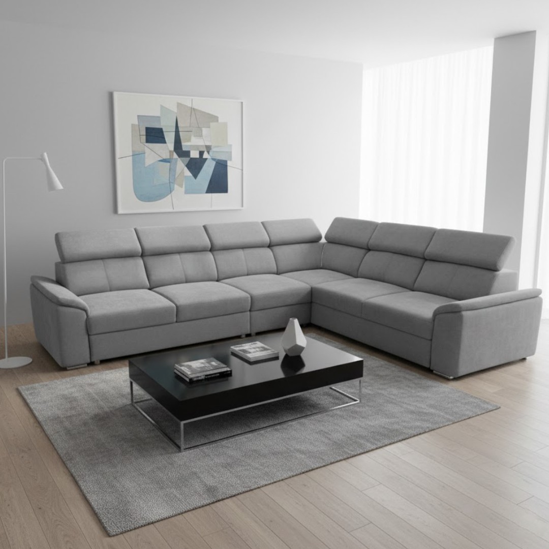 Potaženo šedou látkou Wind 89 - PET FRIENDLY - snadno čistitelná od zvířecí srsti i vlasů.