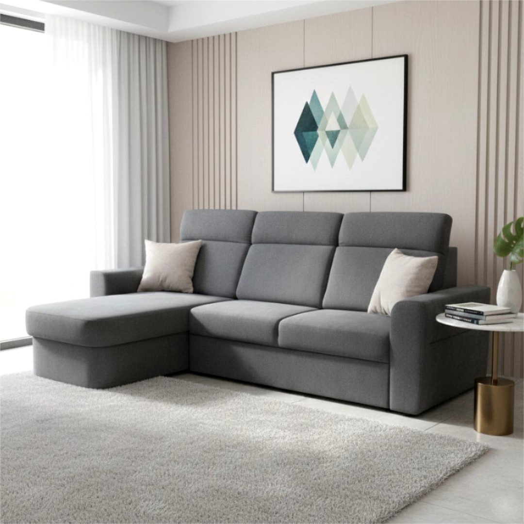 Rozkládací sedací souprava PALMARA je velmi pohodlná a disponuje úložným prostorem, ke kterému je snadný přístup. Rohové provedení je pravé z pozice sedícího. ..