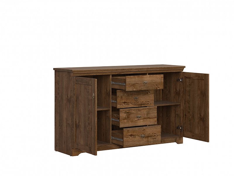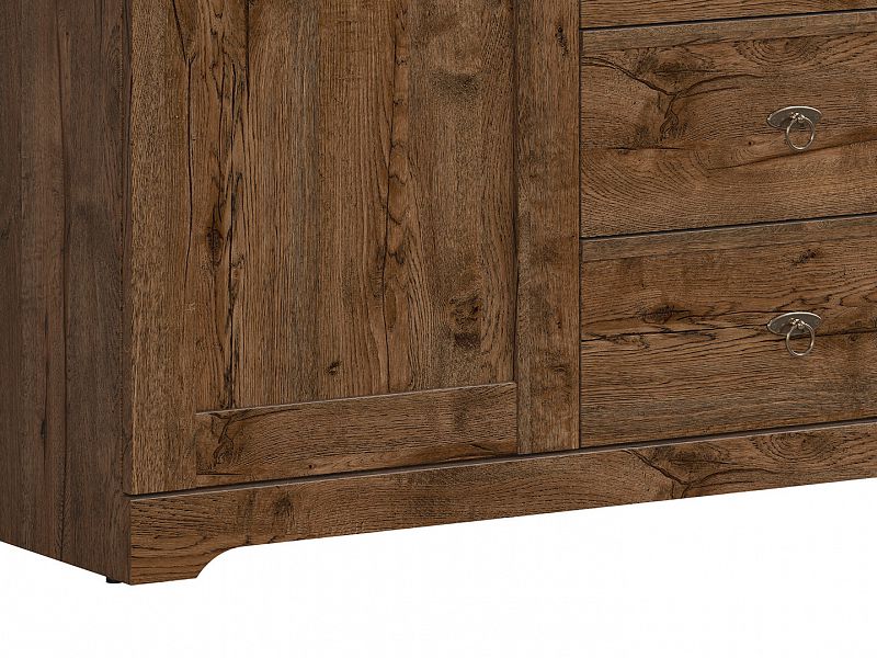 Komoda PATRAS je vyrobena v barevném provedení Dub April. Má praktické členění úložného prostoru v podobě 4 zásuvek a 2 skříněk.