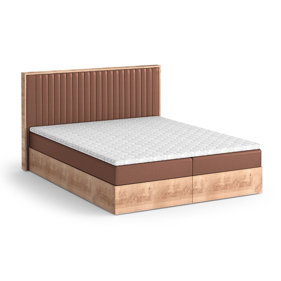 Korpus v dekoru Dub Artisan v kombinaci s čalouněným čelem v elegantní terracotové barvě (Vega 56) přináší moderní a útulný vzhled do každého interiéru. V nabídce máme také další barvy viz ostatní varianty. Optimální oporu pro tělo a příjemné pohodlí zajišťuje bonellová matrace a topper PUR Elastic. Díky bočně vyklápějícím matracím máte snadný přístup do úložného prostoru. Ideální pro uschování sezónních drobností, či lůžkovin.
