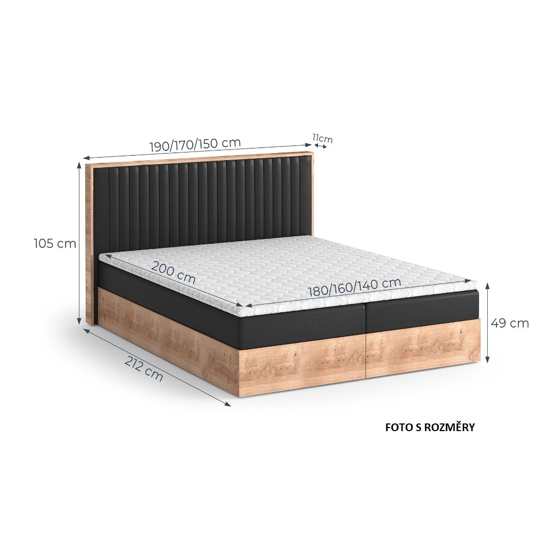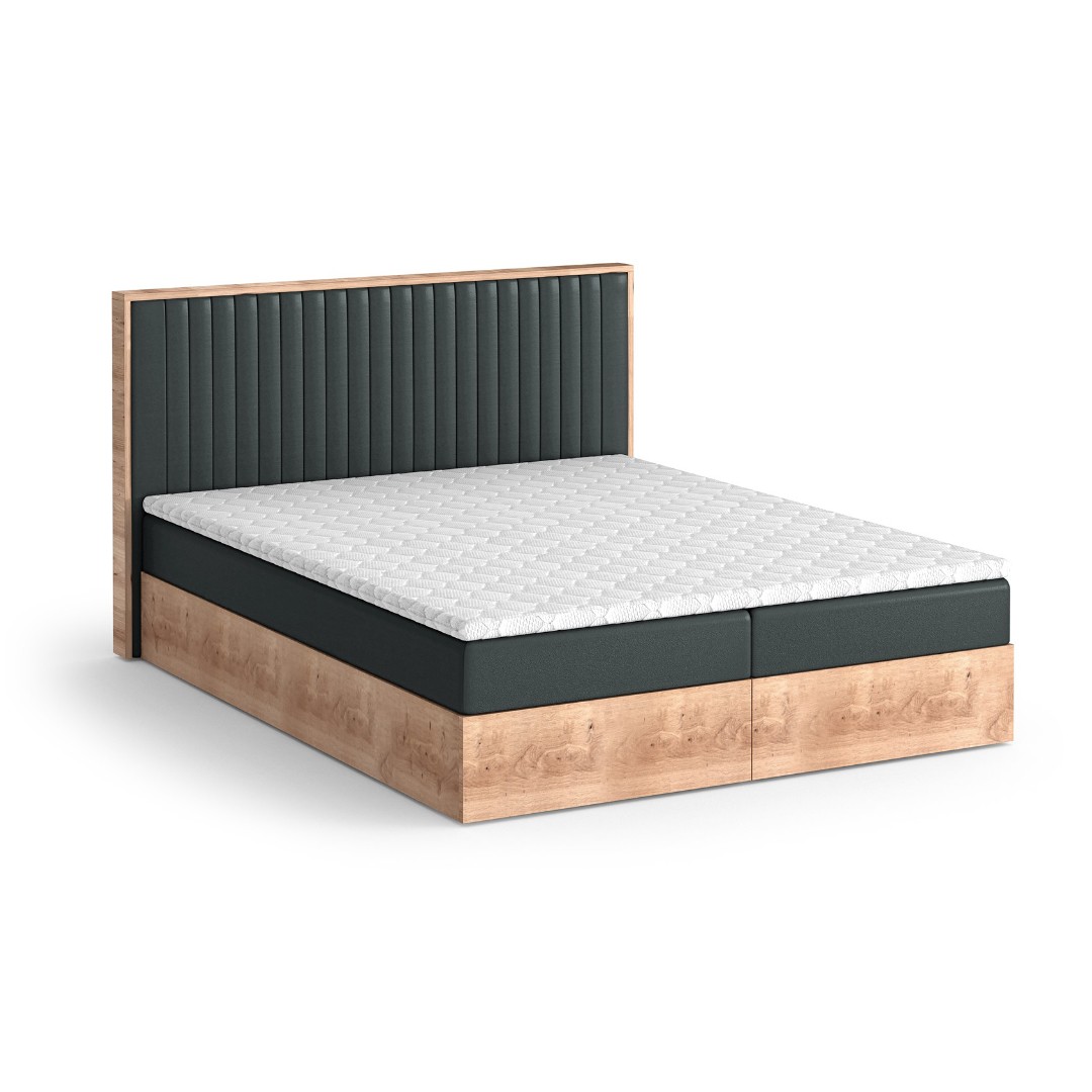 Korpus v dekoru Dub Artisan v kombinaci s čalouněným čelem v elegantní temně zelené barvě (Vega 79) přináší moderní a útulný vzhled do každého interiéru. V nabídce máme také další barvy viz ostatní varianty. Optimální oporu pro tělo a příjemné pohodlí zajišťuje bonellová matrace a topper PUR Elastic. Díky bočně vyklápějícím matracím máte snadný přístup do úložného prostoru. Ideální pro uschování sezónních drobností, či lůžkovin.