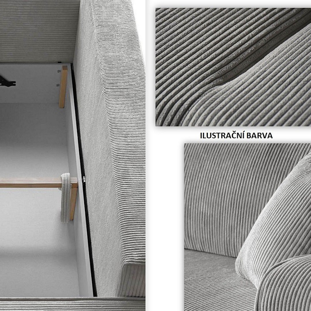 Součástí je také úložný prostor pro uschování lůžkovin. Výplň je tvořena pružinami Bonell.