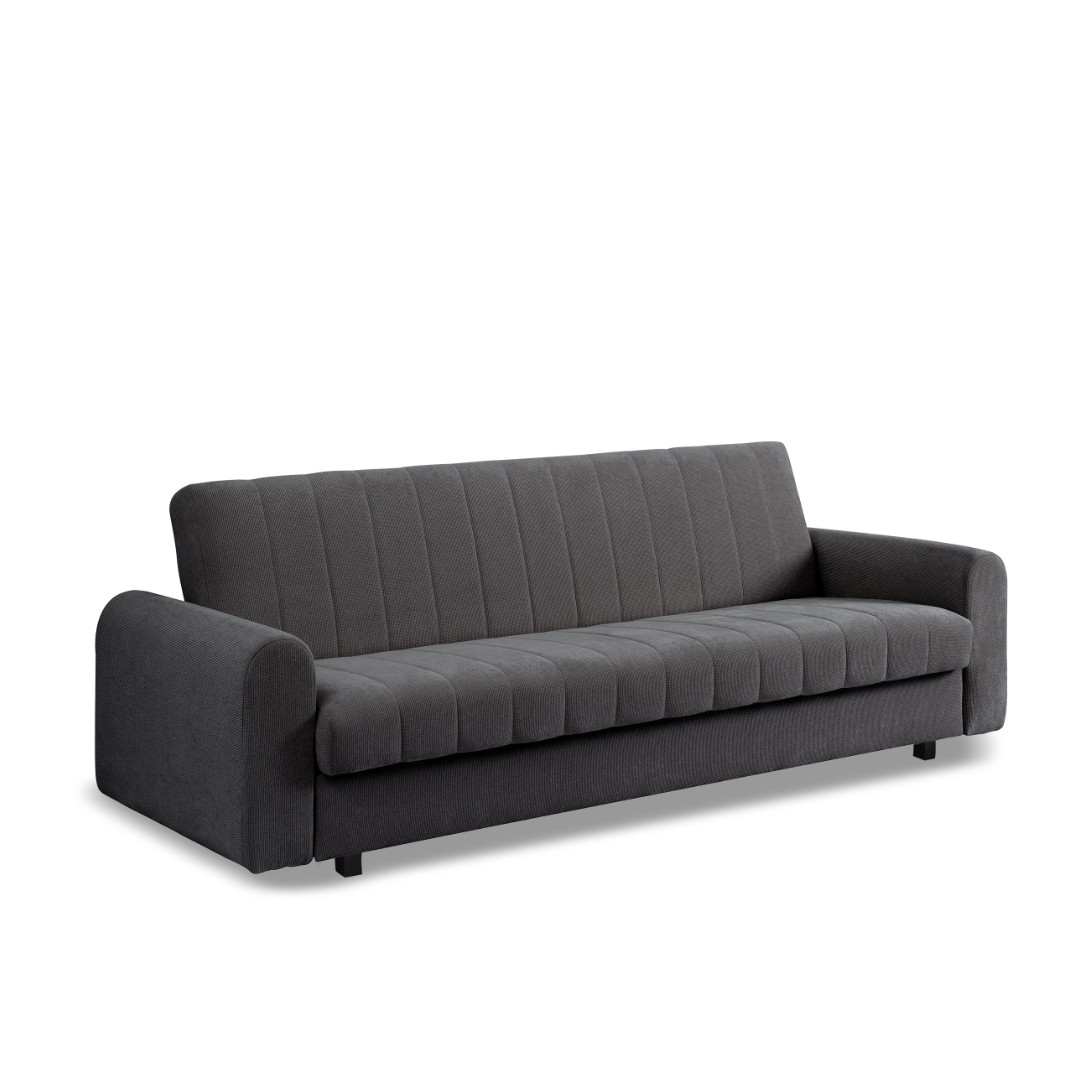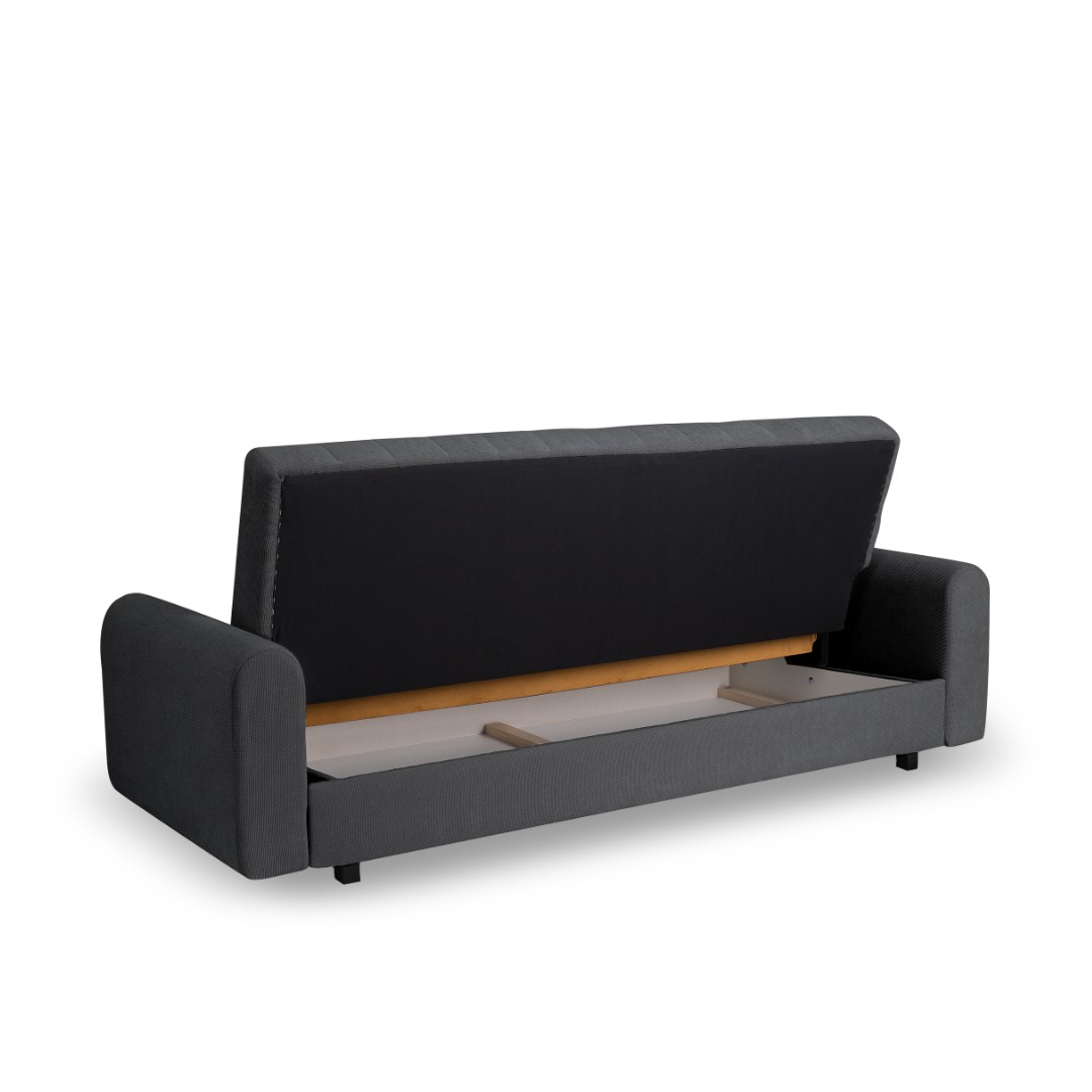 Navíc pohovku během chvilky proměníte soupravu v prostorné lůžko o rozměrech 122 x 192 cm, které zajistí pohodlné přespání vaší návštěvě. Nechybí ani praktický úložný prostor pro uschování lůžkovin. V sedáku a opěradle jsou pružiny Bonell (drát 2,4 mm) a vysoce elastická pěna T30 o tloušťce 3 cm.