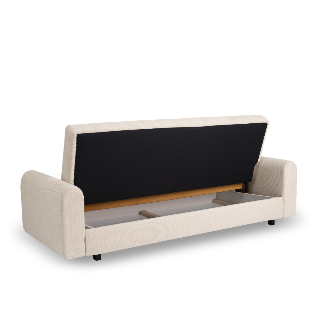 Navíc během chvilky proměníte soupravu v prostorné lůžko o rozměrech 122 x 192 cm, které zajistí pohodlné přespání vaší návštěvě. Nechybí ani praktický úložný prostor pro uschování lůžkovin. V sedáku a opěradle jsou pružiny Bonell (drát 2,4 mm) a vysoce elastická pěna T30 o tloušťce 3 cm.