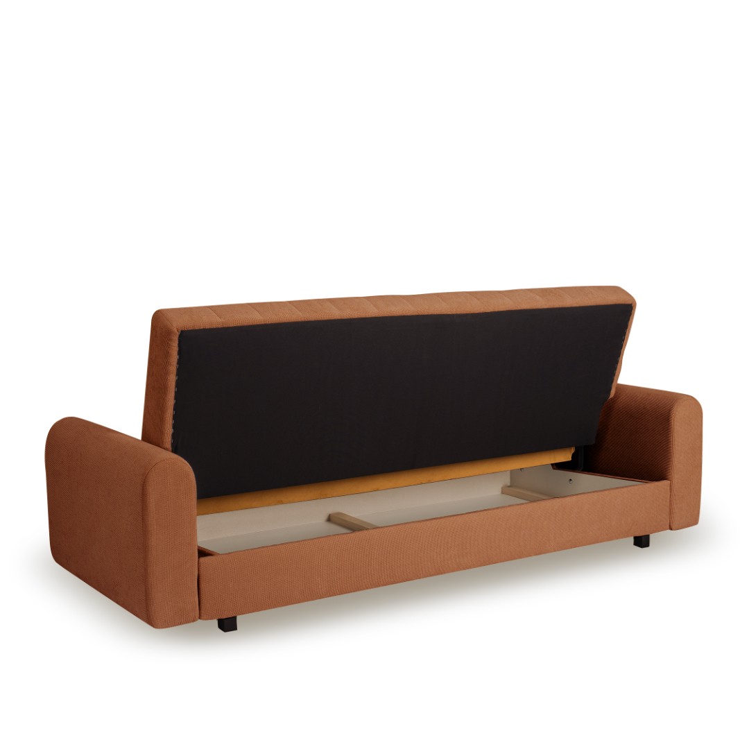 Navíc během chvilky proměníte soupravu v prostorné lůžko o rozměrech 122 x 192 cm, které zajistí pohodlné přespání vaší návštěvě. Nechybí ani praktický úložný prostor pro uschování lůžkovin. V sedáku a opěradle jsou pružiny Bonell (drát 2,4 mm) a vysoce elastická pěna T30 o tloušťce 3 cm.