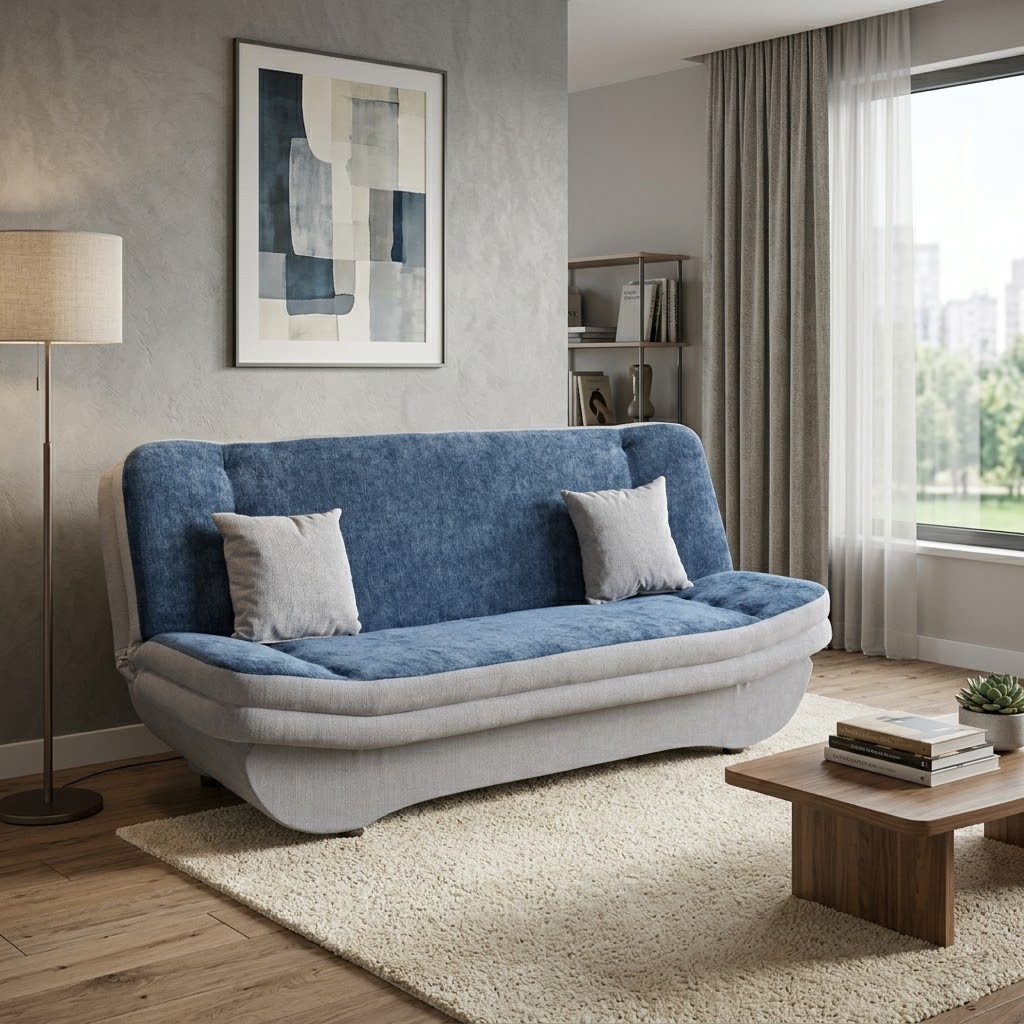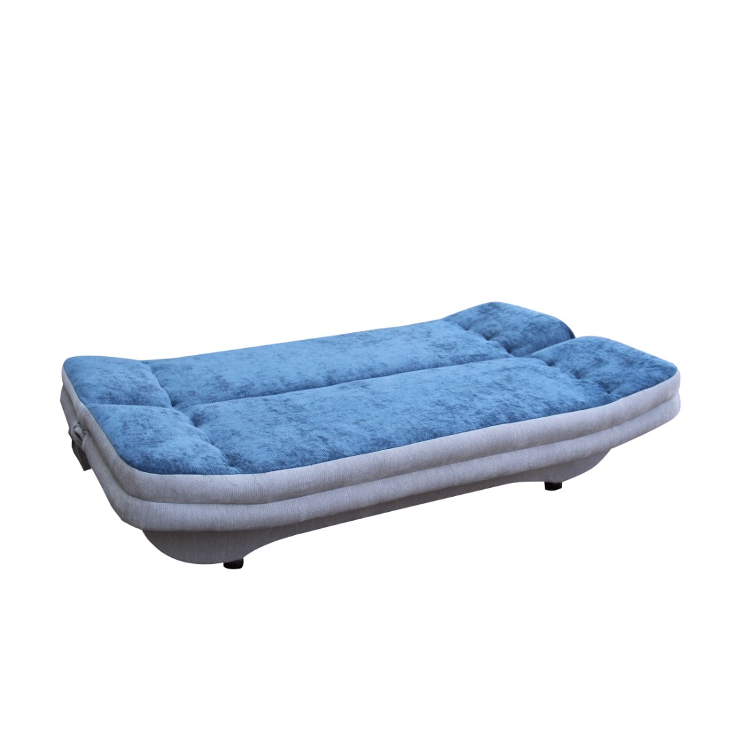 Pohovka je čalouněná látkou v barvě šedá/modrá (Vibe 86/77). V nabídce také jiné barvy viz další varianty. Nabídne dostatek místa k sezení a stejně tak disponuje funkcí rozkládání (clic/clac) a je vhodná k příležitostnému spaní. Velikost spací plochy je 125 x 198 cm. Další výhodou pohovky PONTON je úložný prostor vhodný pro uschování lůžkovin. Pohodlí při každodenním sezení zabezpečuje výplň z pružiny bonell a vlnité pružiny.