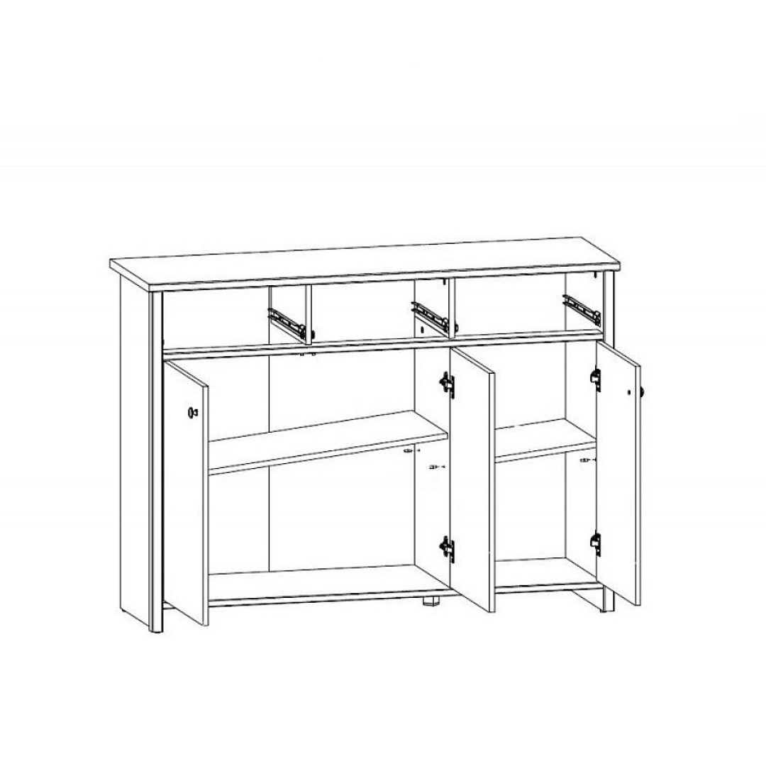 Zhotoveno z lamina. Je tak dodána komodě pevnost a odolnost. Umístění je možné prakticky kdekoliv v domě, kde je zapotřebí další úložný prostor.