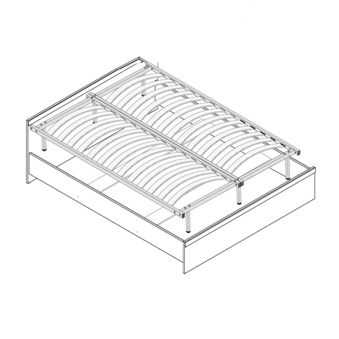 V ceně postele je lamelový rošt na nožkách (v kovovém rámu s opěrnýma nožkama na zem, nosnost 150kg), takže stačí dokoupit pouze matraci, tu je možné přiobjednat (viz související zboží). Postel je určena pro matraci šíře 140 cm. PORTO II NEW postel je vyrobena z lamina.